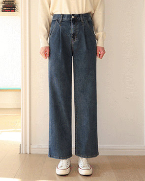 Attachment Back Banding Wide Denim Pants (3% Span)[1588]