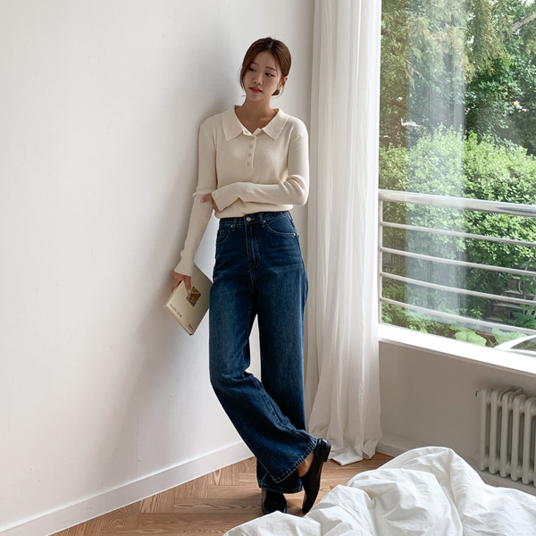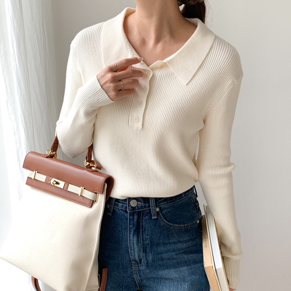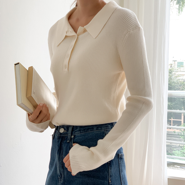 촉촉하고 부드러운 소재감의 카라 니트에요.