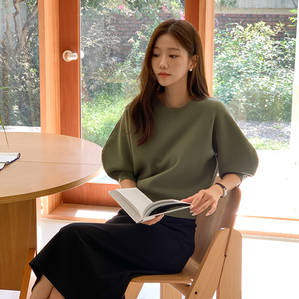 벌룬 형태의 7부 소매로 여성스럽고
