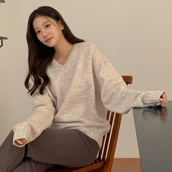 뽀송한 터치감의 도톰 루즈핏 브이니트