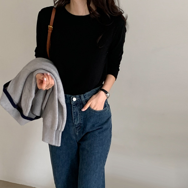 라운드넥으로 단품, 이너로도 활용도 높게 코디하기 좋아요.