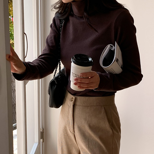 넥라인을 부드럽게 감싸주는 폴라넥으로