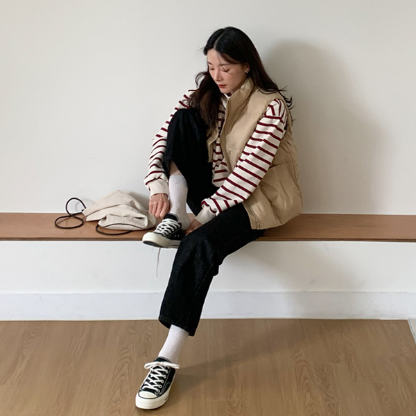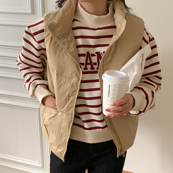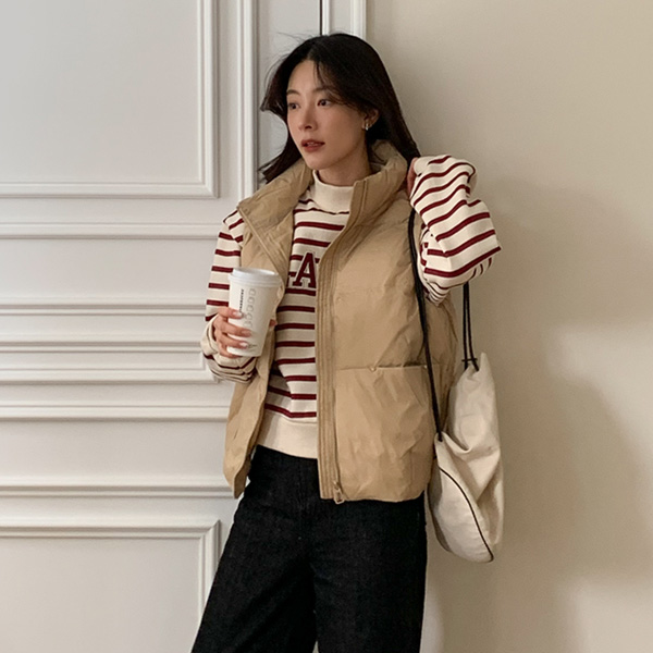 다양한 룩에 두루두루 매치하기 좋은 패딩조끼에요.