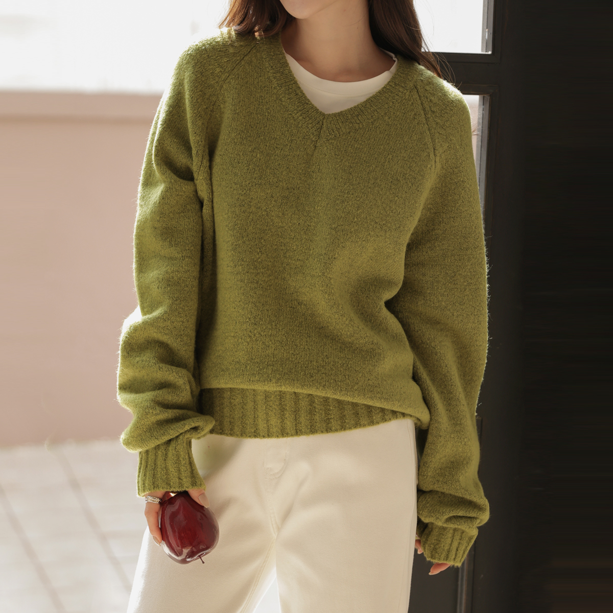 A loose fit V-neck knit with a soft touch like a cloud