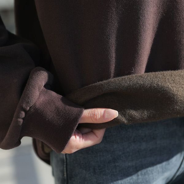 착용할 수 있는 반폴라 디자인의 맨투맨입니다.
