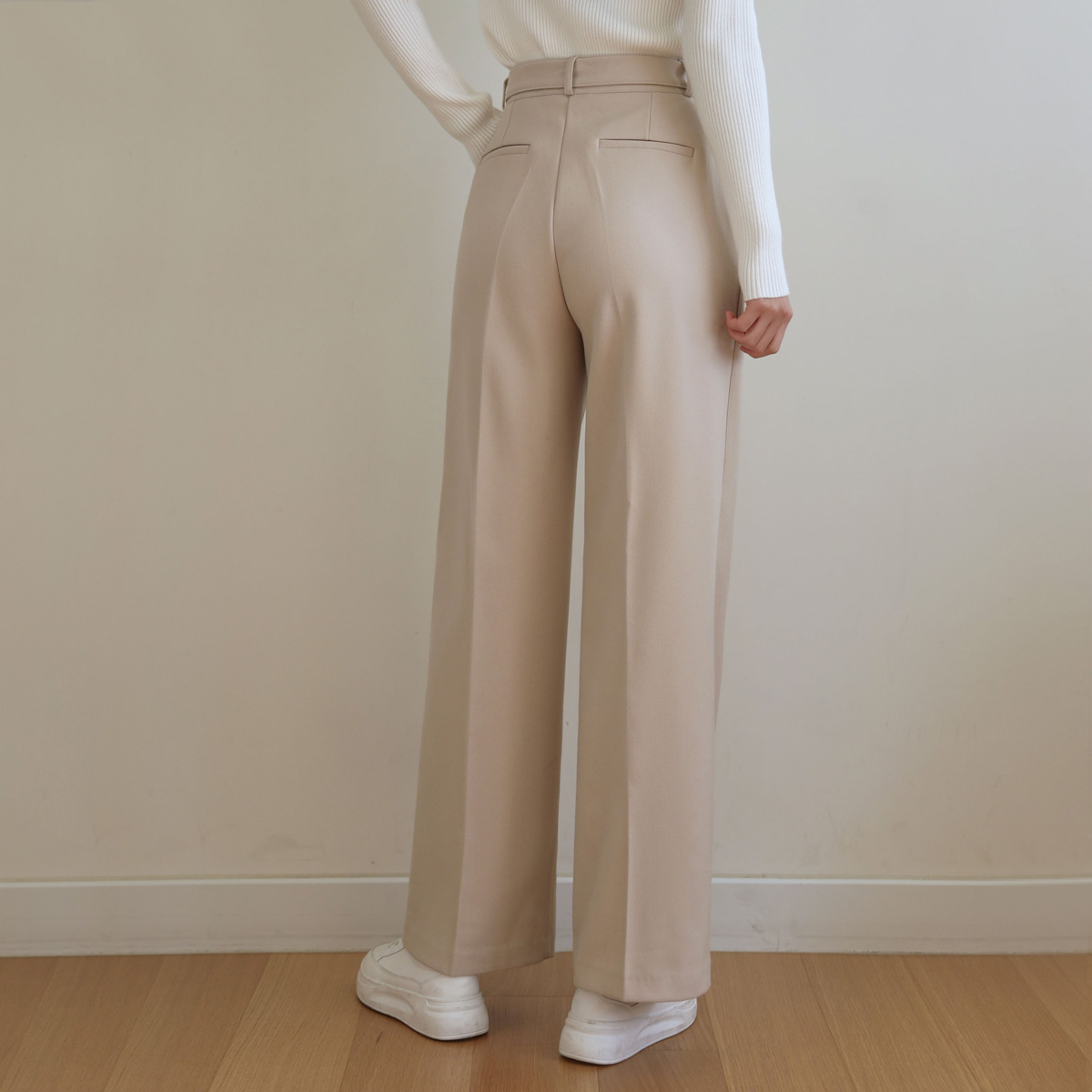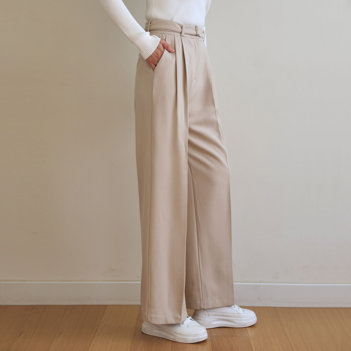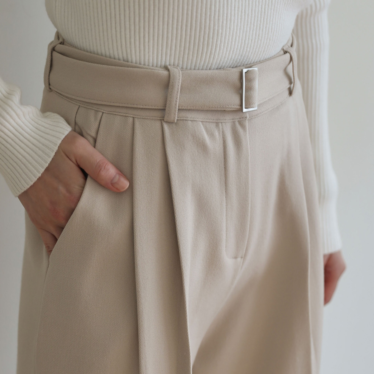 Pin tuck slacks that are even more practical with a belt set!