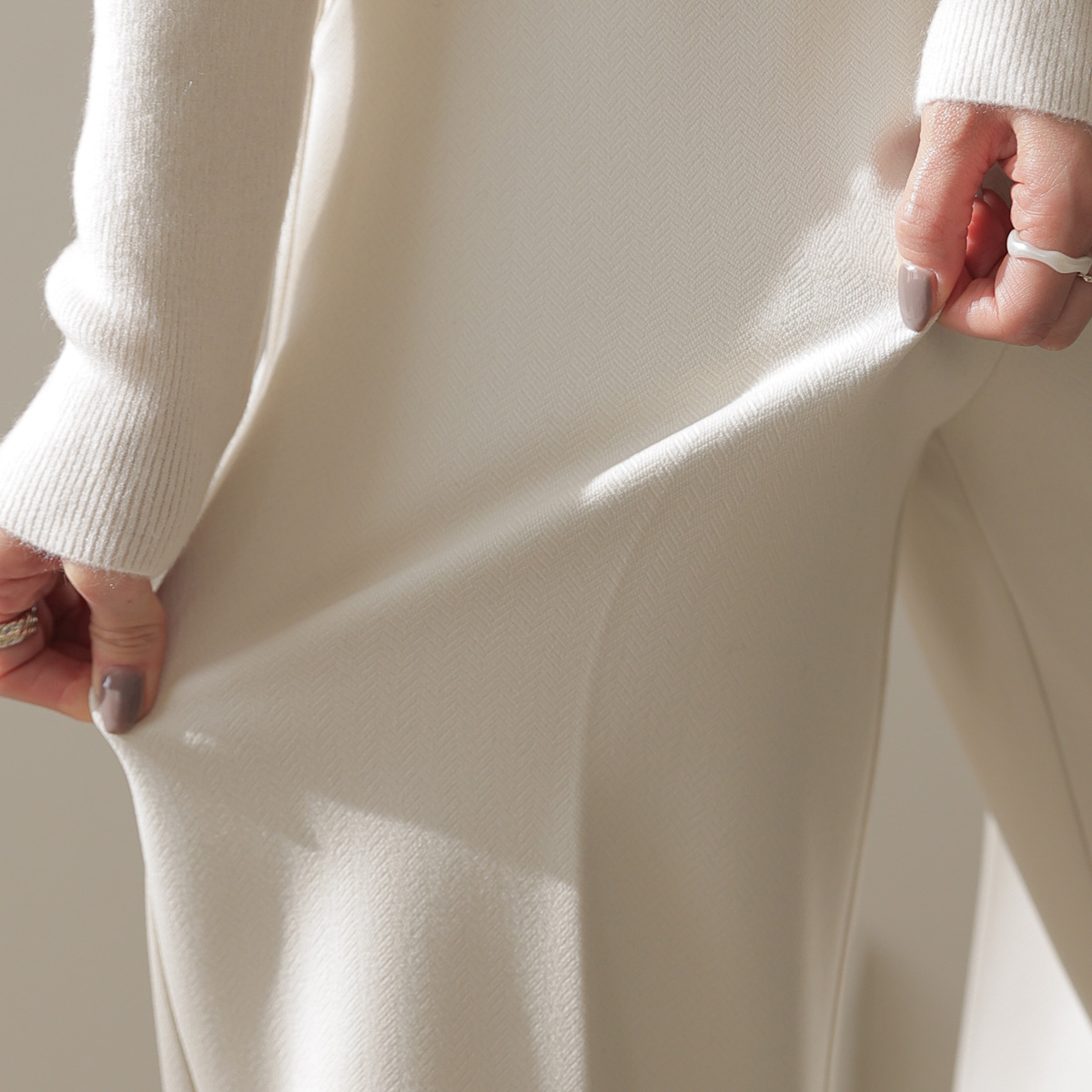 Winter slacks with a luxurious herringbone weave