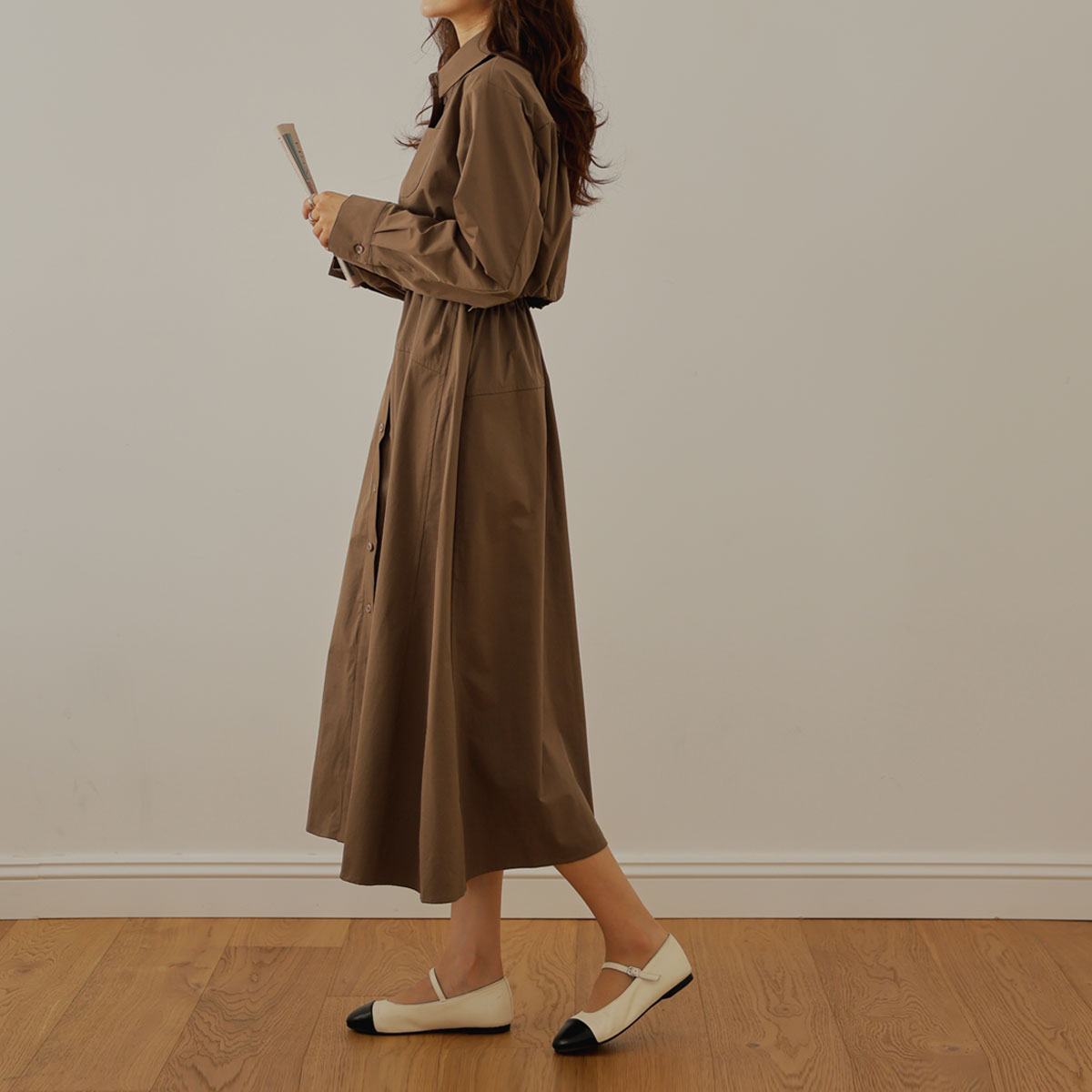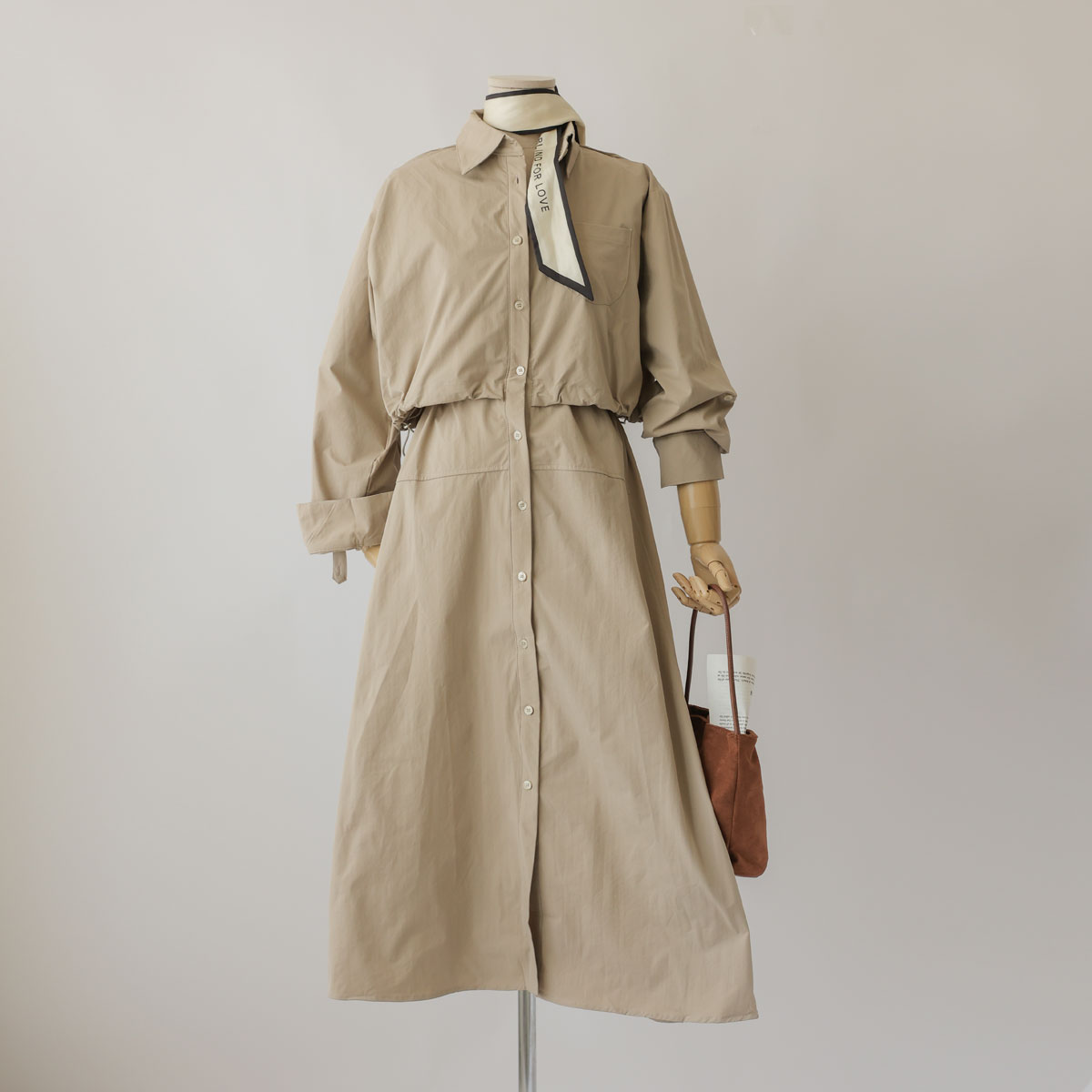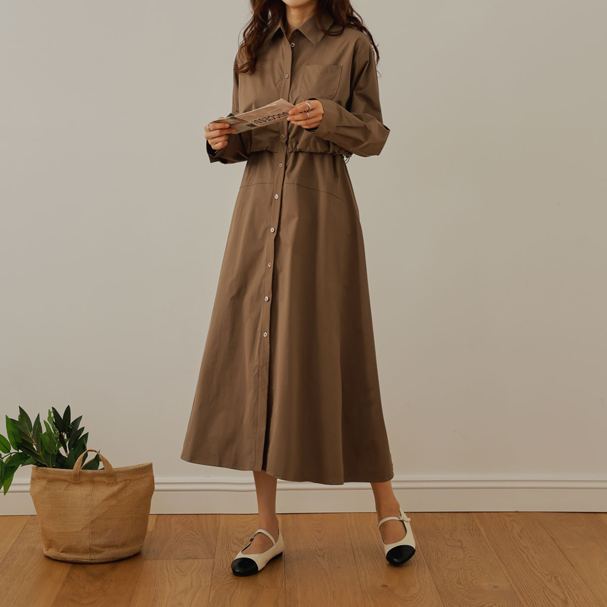 Introducing a shirt-style one-piece dress that adds style to a neat mood.