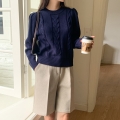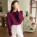 With neat cable weave and puff sleeves.