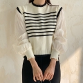 - home > Stripe items > # KNIT > Hamel layered single-breasted color combination Vest