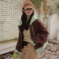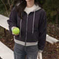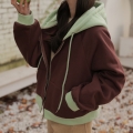 Color combination Crop Hood Zip up that is easy to wear