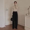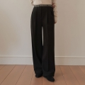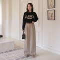 Lettering banding pin tuck wide slacks (napping)