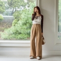- home > PANTS > Casual Pants > Bread-to-pin tuck wide cotton pants