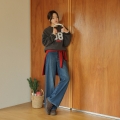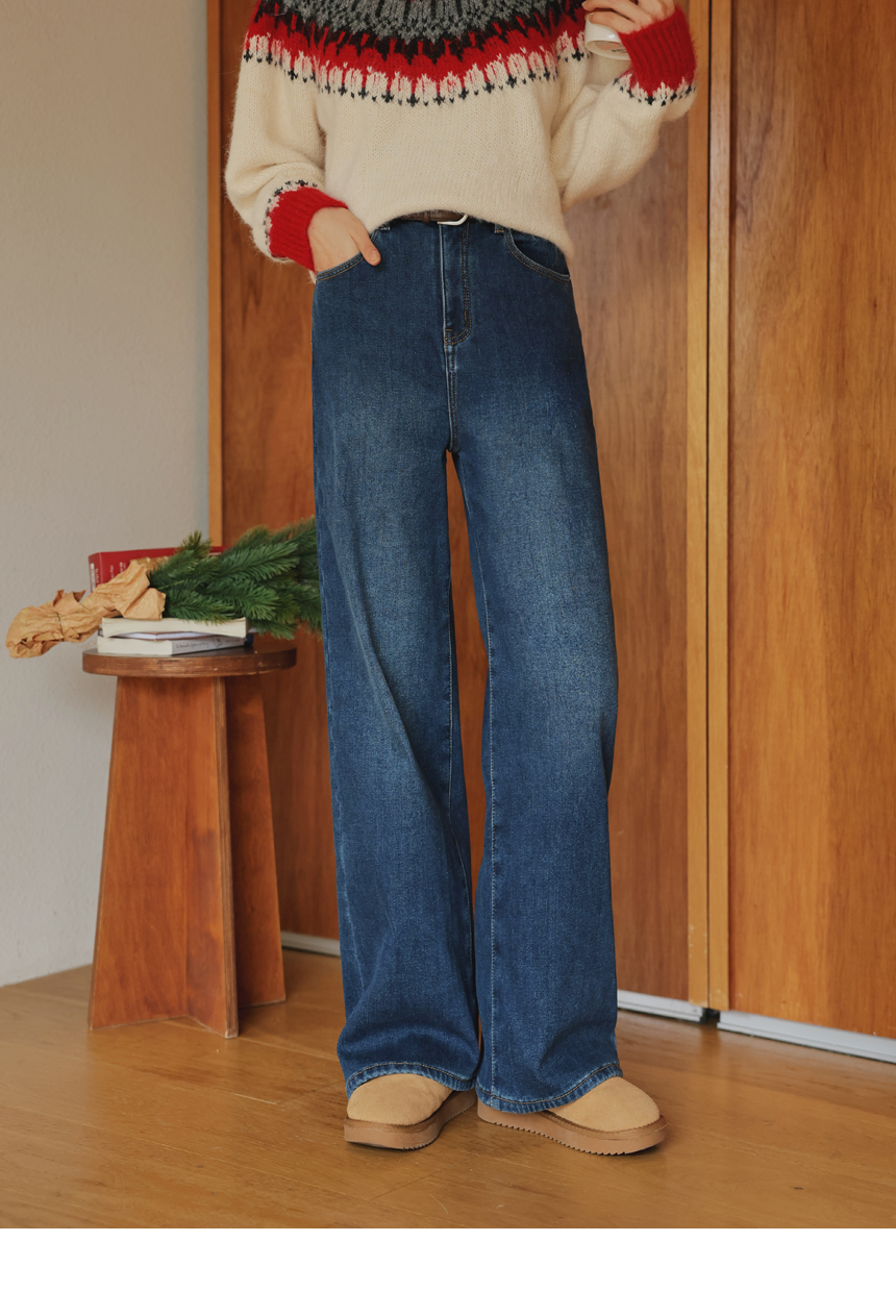 - home > Real-time Best > [Made] Real Elastic Tension Wide Raised Fleece Denim Pants