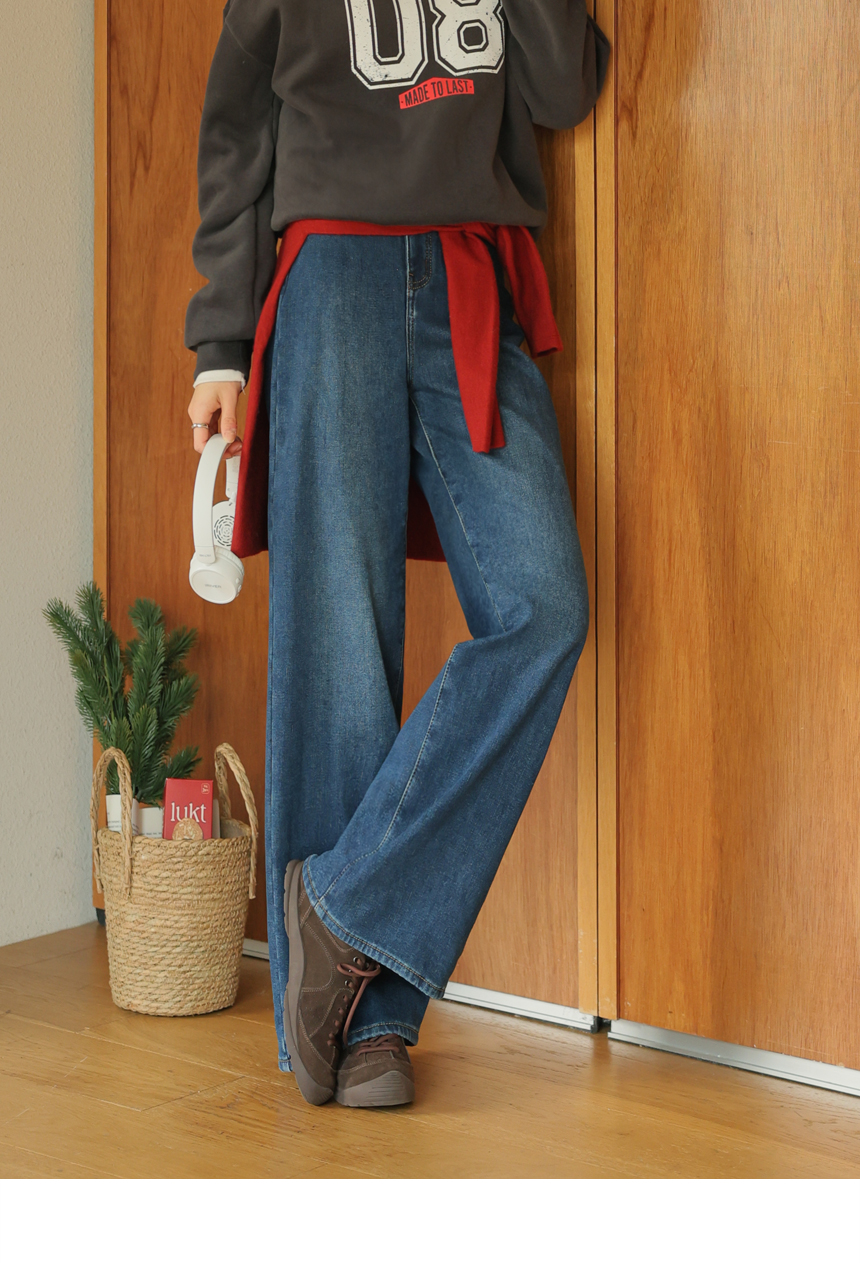 [Made] Real Elastic Tension Wide Raised Fleece Denim Pants