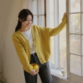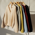 Lambswool loose v-neck button knit