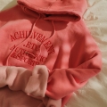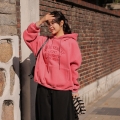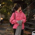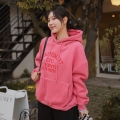 Color Font Embroidery Sheepskin Loose Fit Hoodie