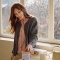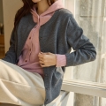 - home > A daily essential! A cozy winter top. > # Cardigan > Color-block Hooded Layered Knit