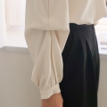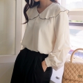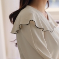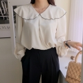 Audrey color combination collared long-sleeved blouse