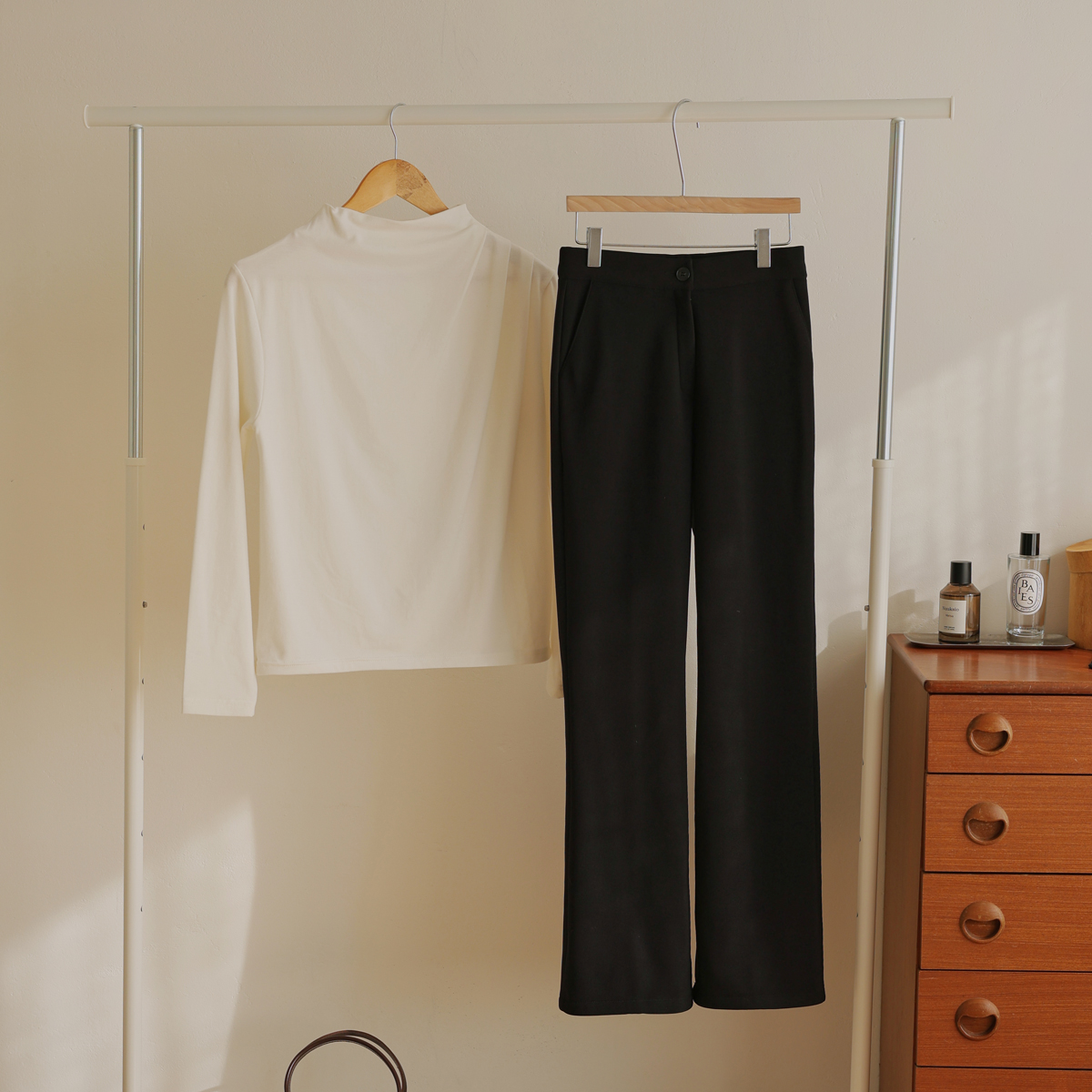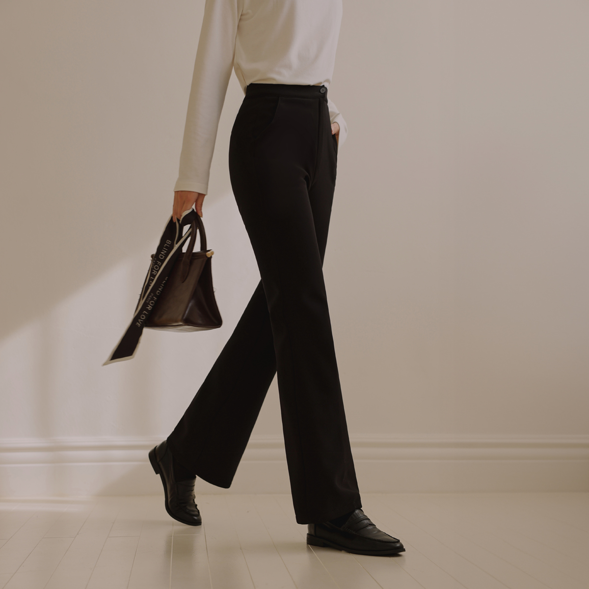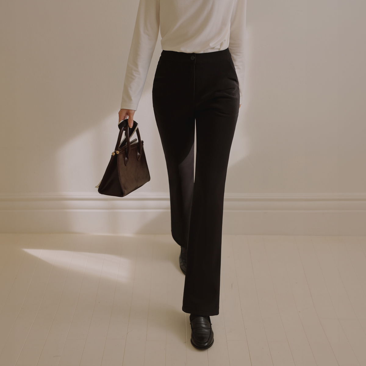 Slim fit with a boot cut pattern that utilizes tension lines that move freely along the body
