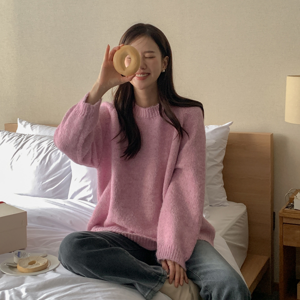 몽글몽글 헤어리한 소재감의 도톰 니트