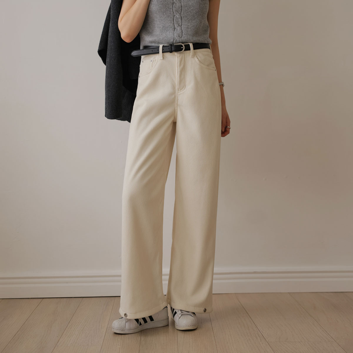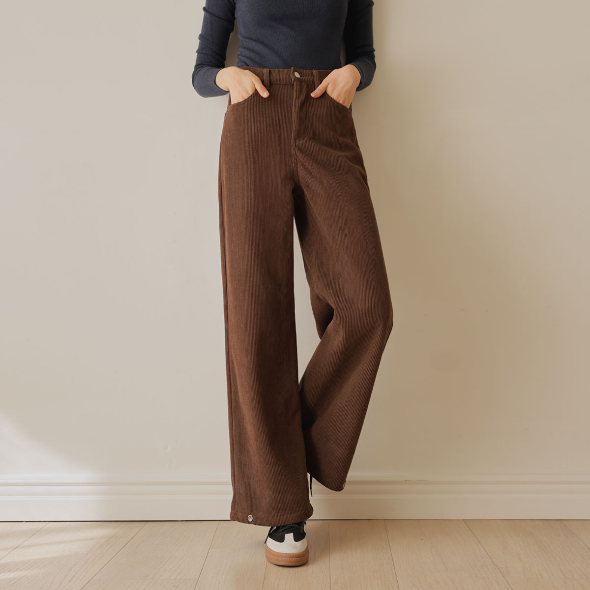 Wide pants with snap buttons for added style
