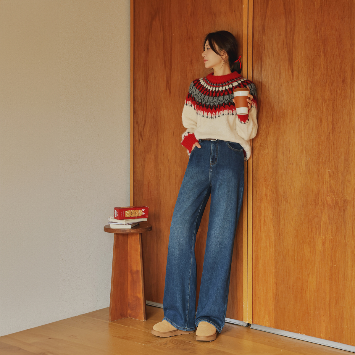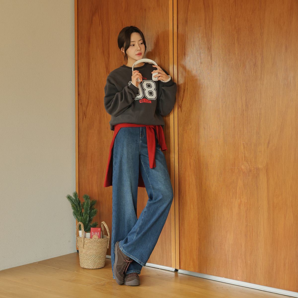 <b>[Made]</b> Real Elastic Tension Wide Raised Fleece Denim Pants
