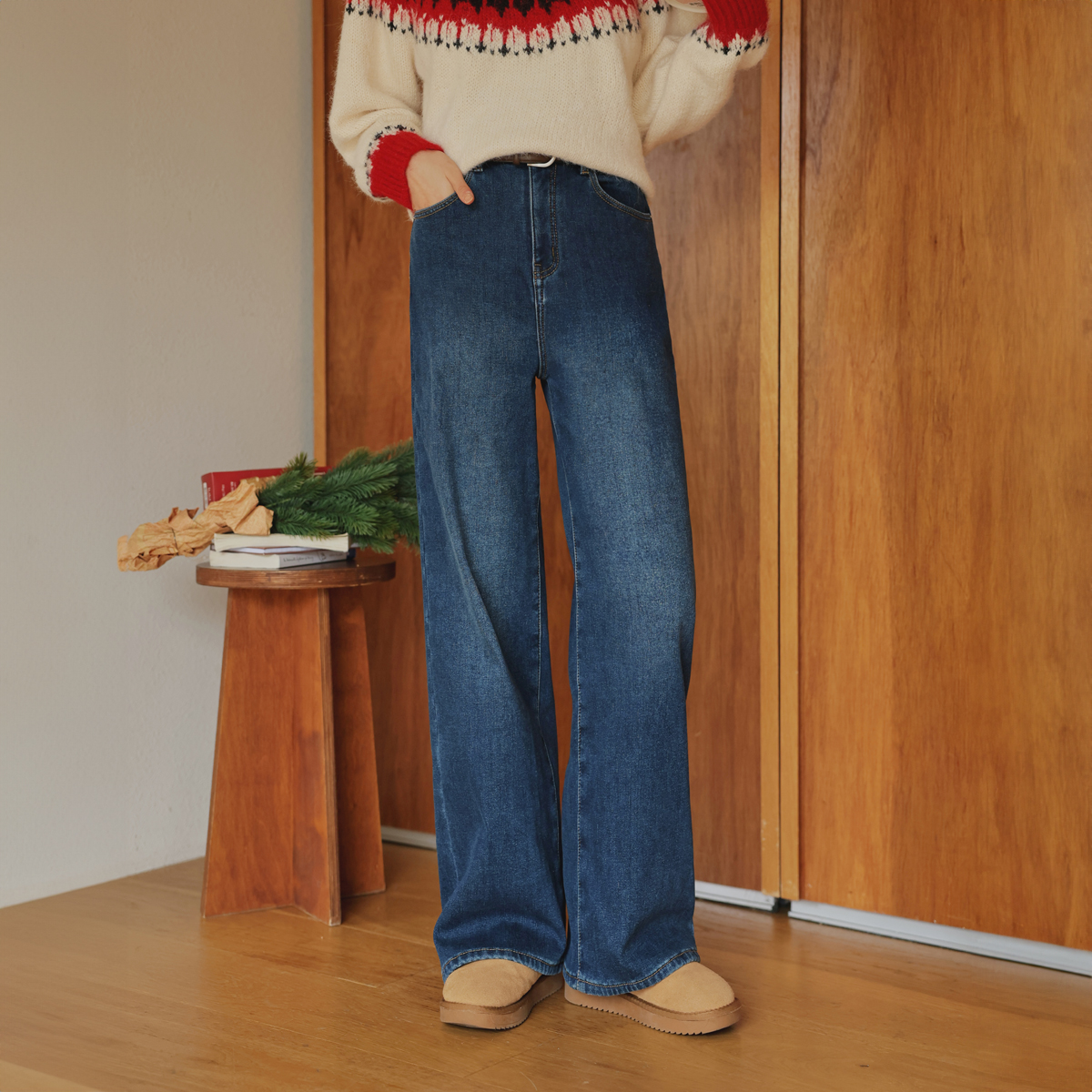 [Made] Real Elastic Tension Wide Raised Fleece Denim Pants