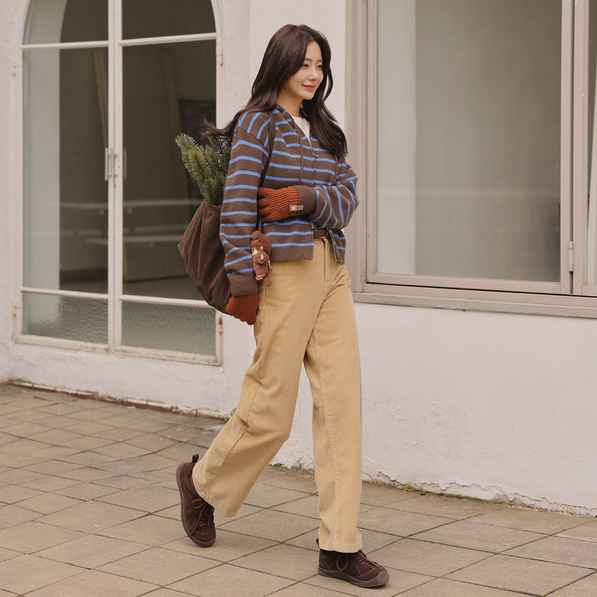 A stylish two-way hooded zip-up knit that can be worn casually.