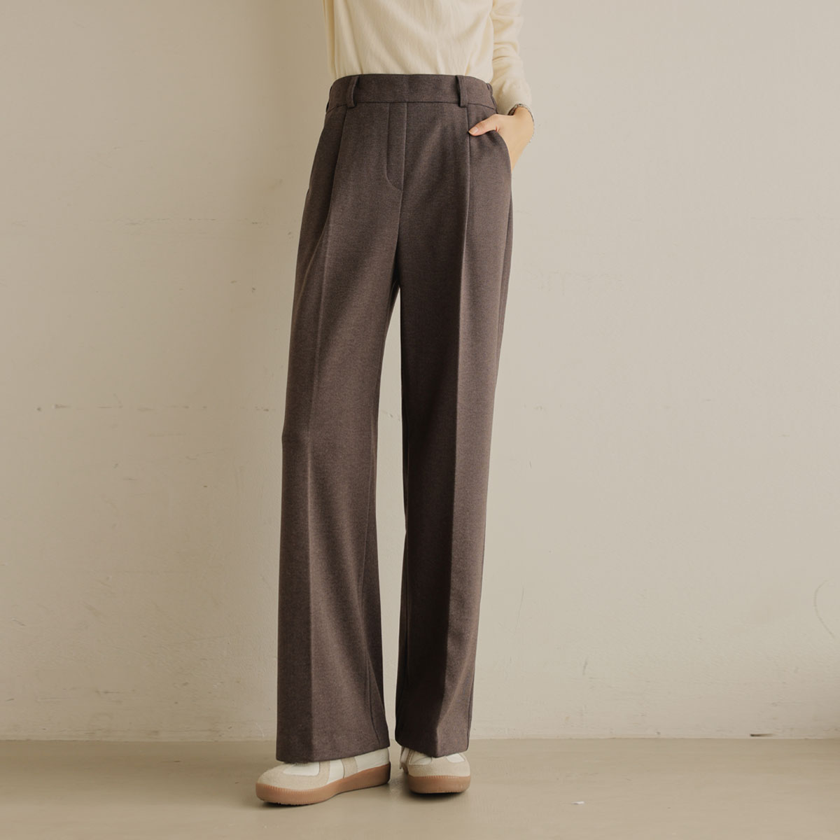 Wool slacks finished with a herringbone pattern