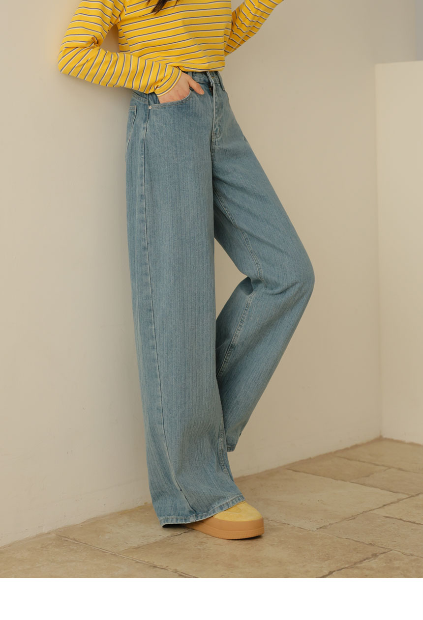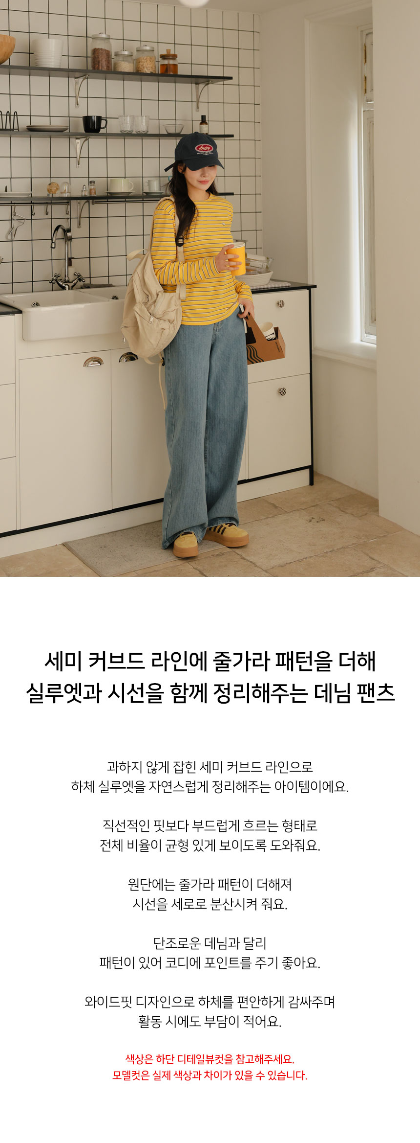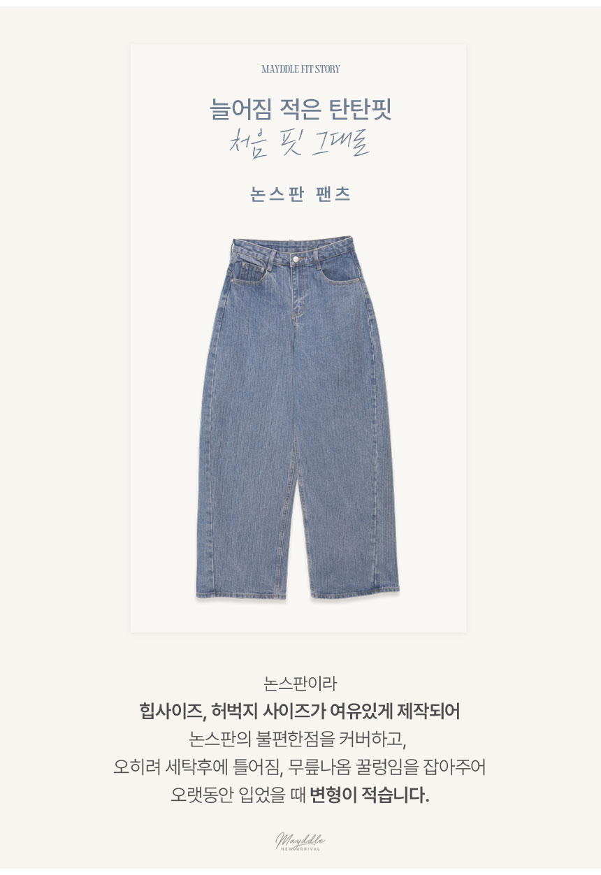 Denim pants that organize both the silhouette and the look