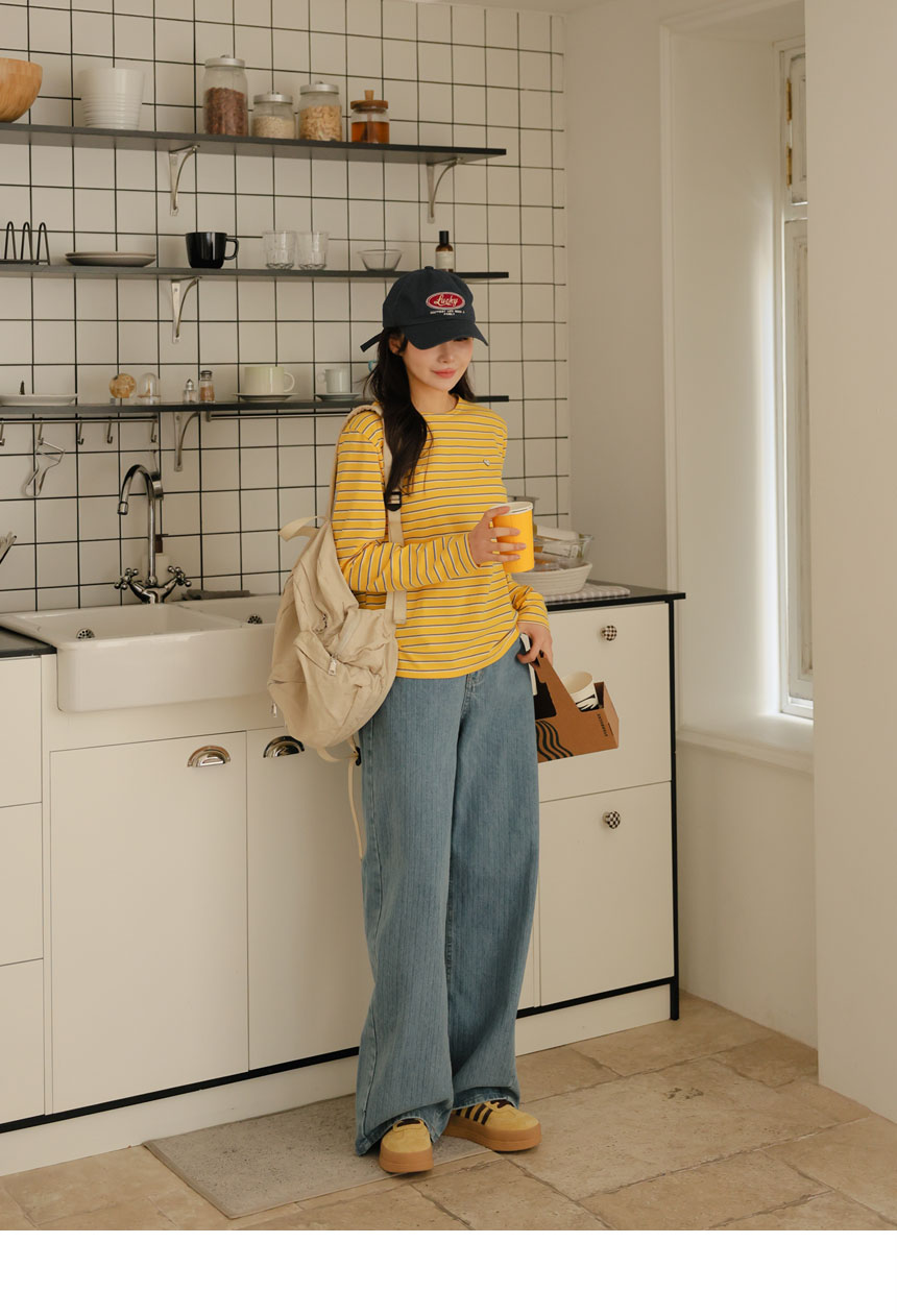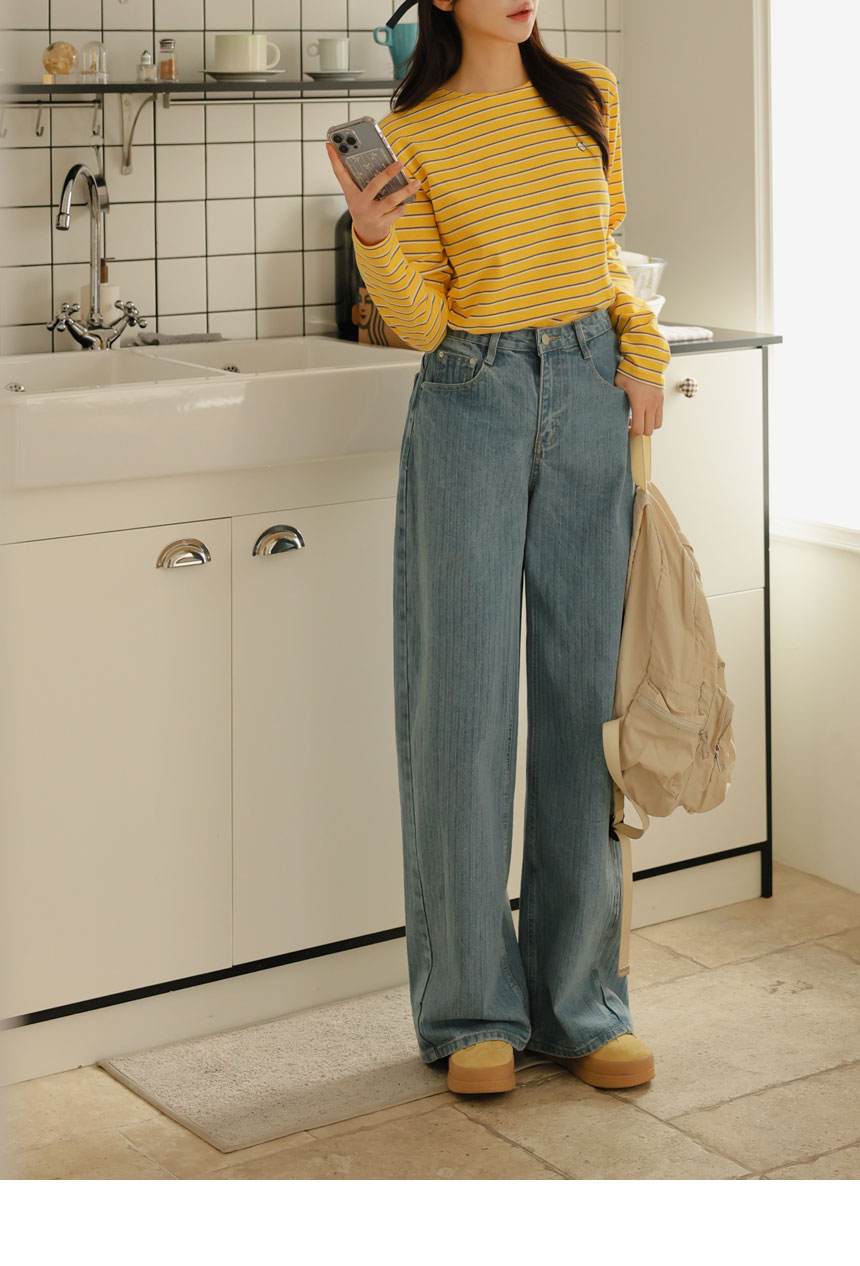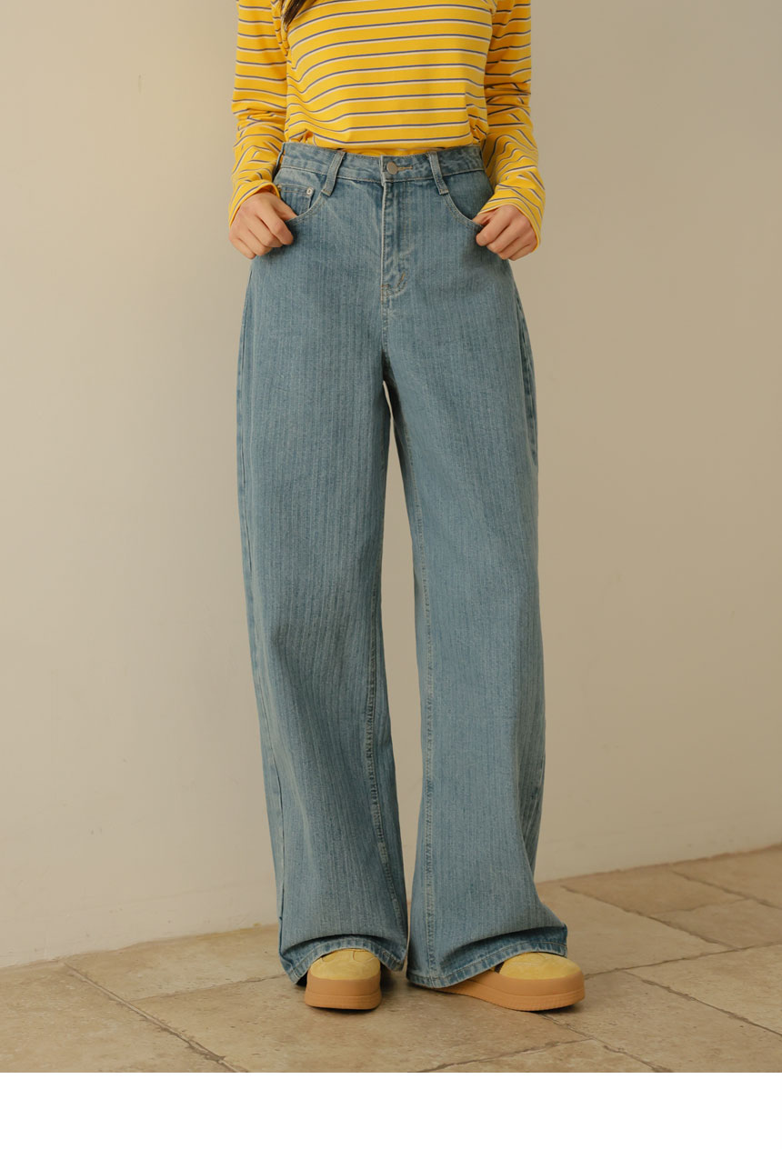 Denim pants that organize both the silhouette and the look