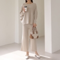 - home > PANTS > Casual Pants > Fringe boat neck knit set