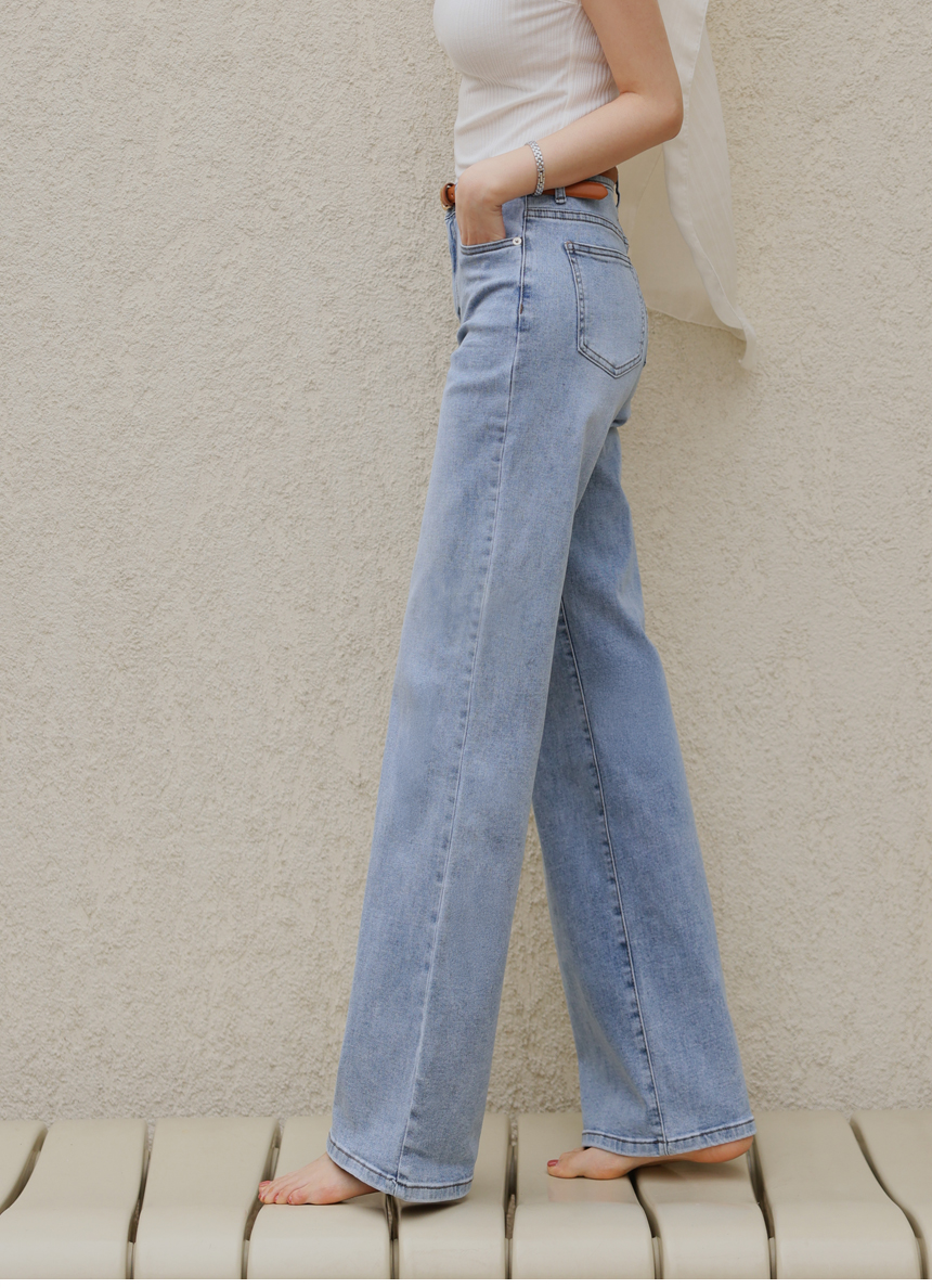 [Hidden Waistband] 2 Types of Jelly Tension Wide Straight Fit Denim