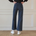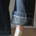 Wish Pin Tuck Fleece Wide Denim Pants (SL)
