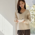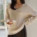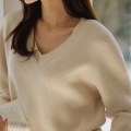 Soft Real V-neck Long-Sleeve Knit (Cashmere Blend)