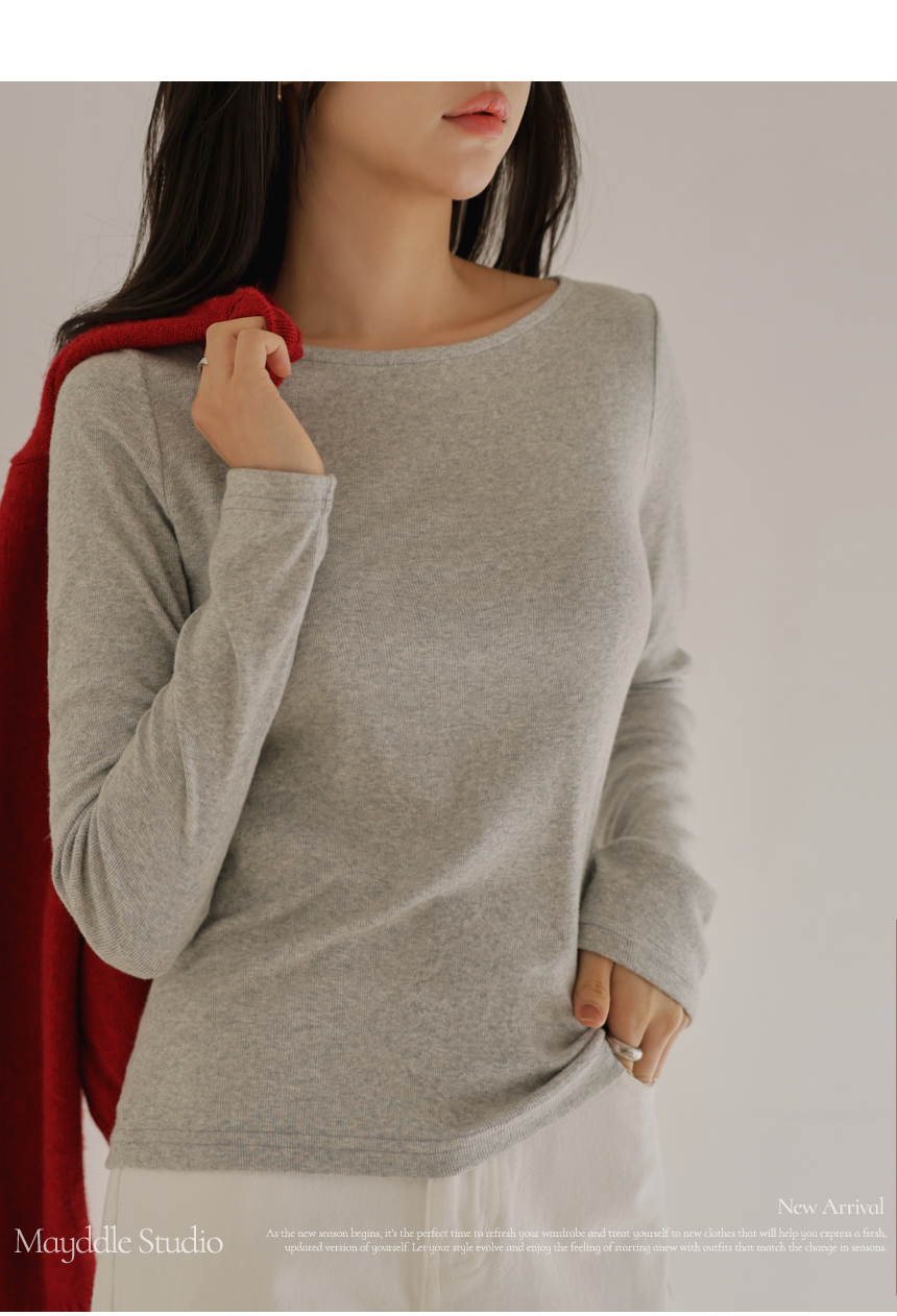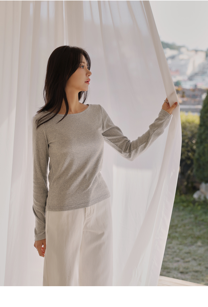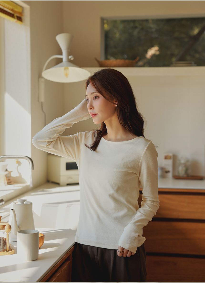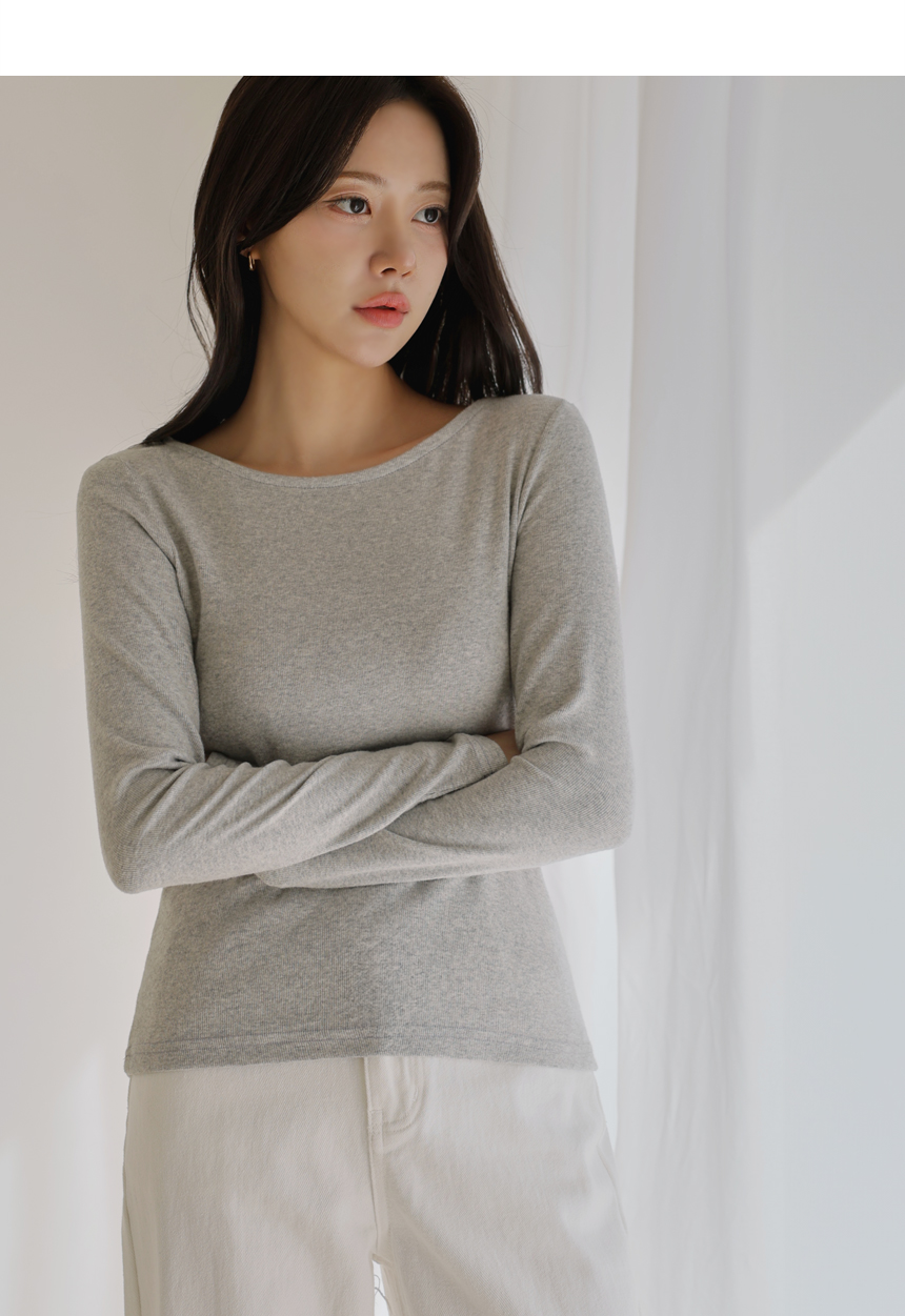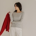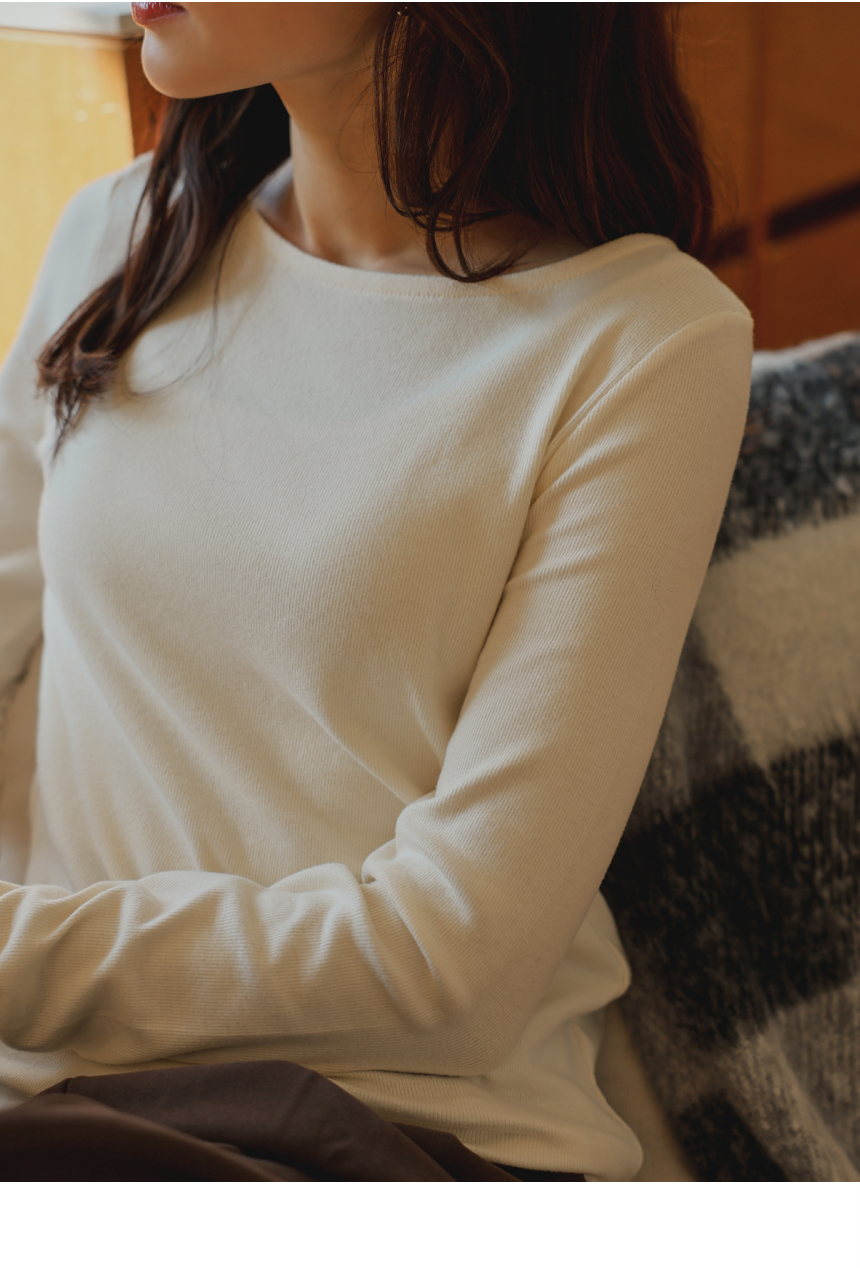 Soft napping touch, delicately revealed boat neck line