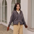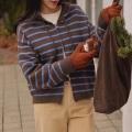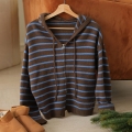 A stylish two-way hooded zip-up knit that can be worn casually.