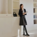 Back banding napping midi pleated skirt