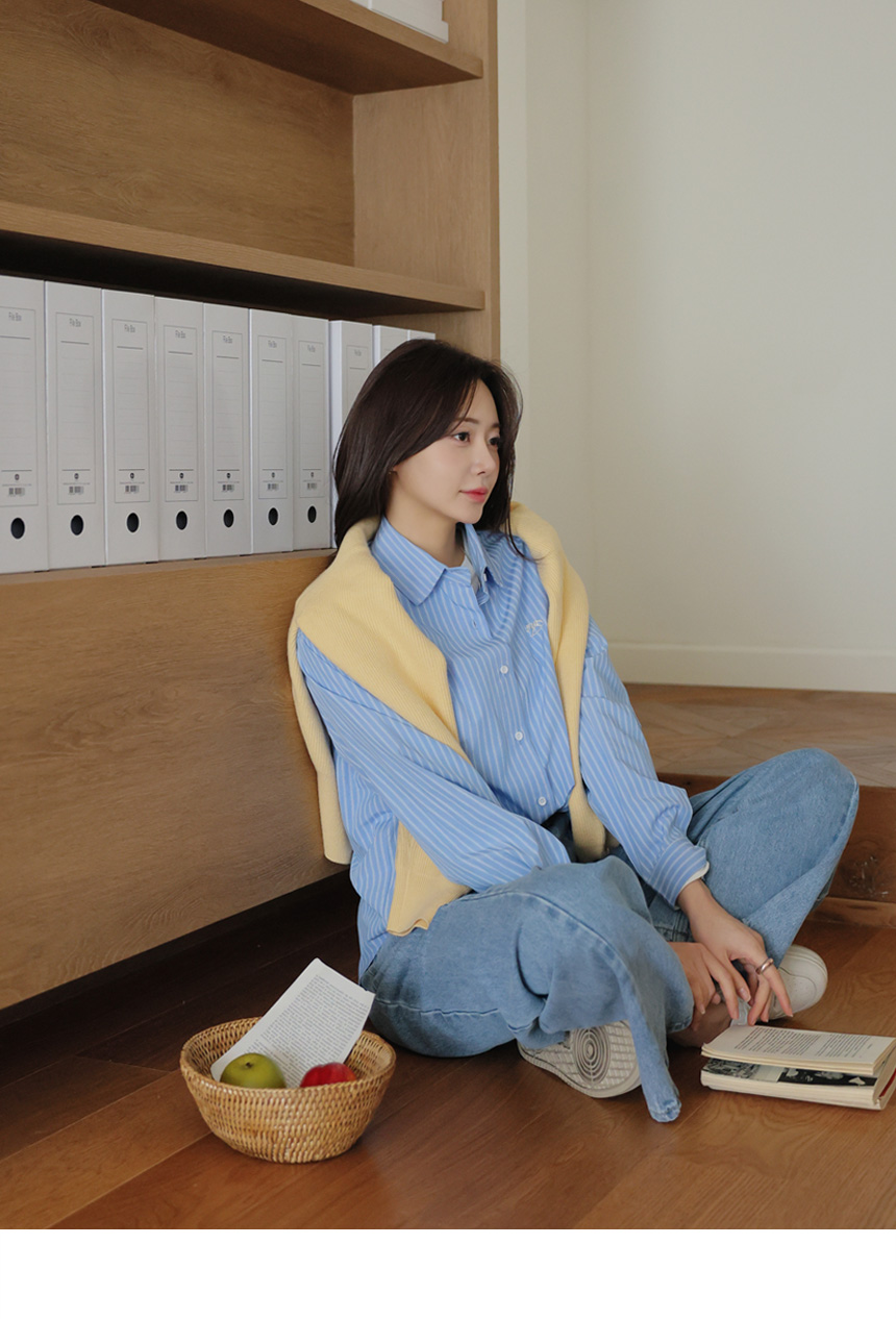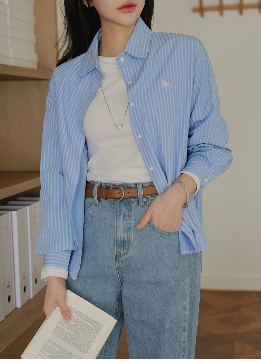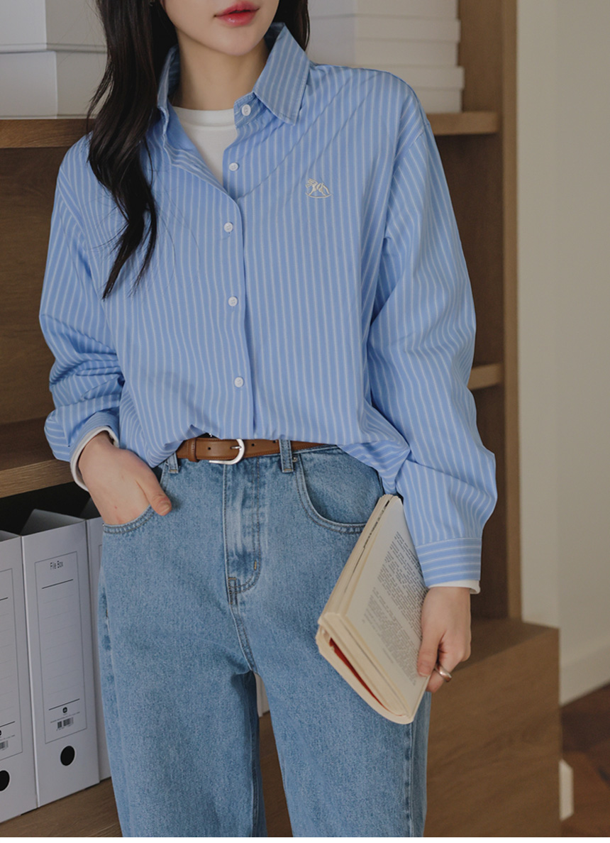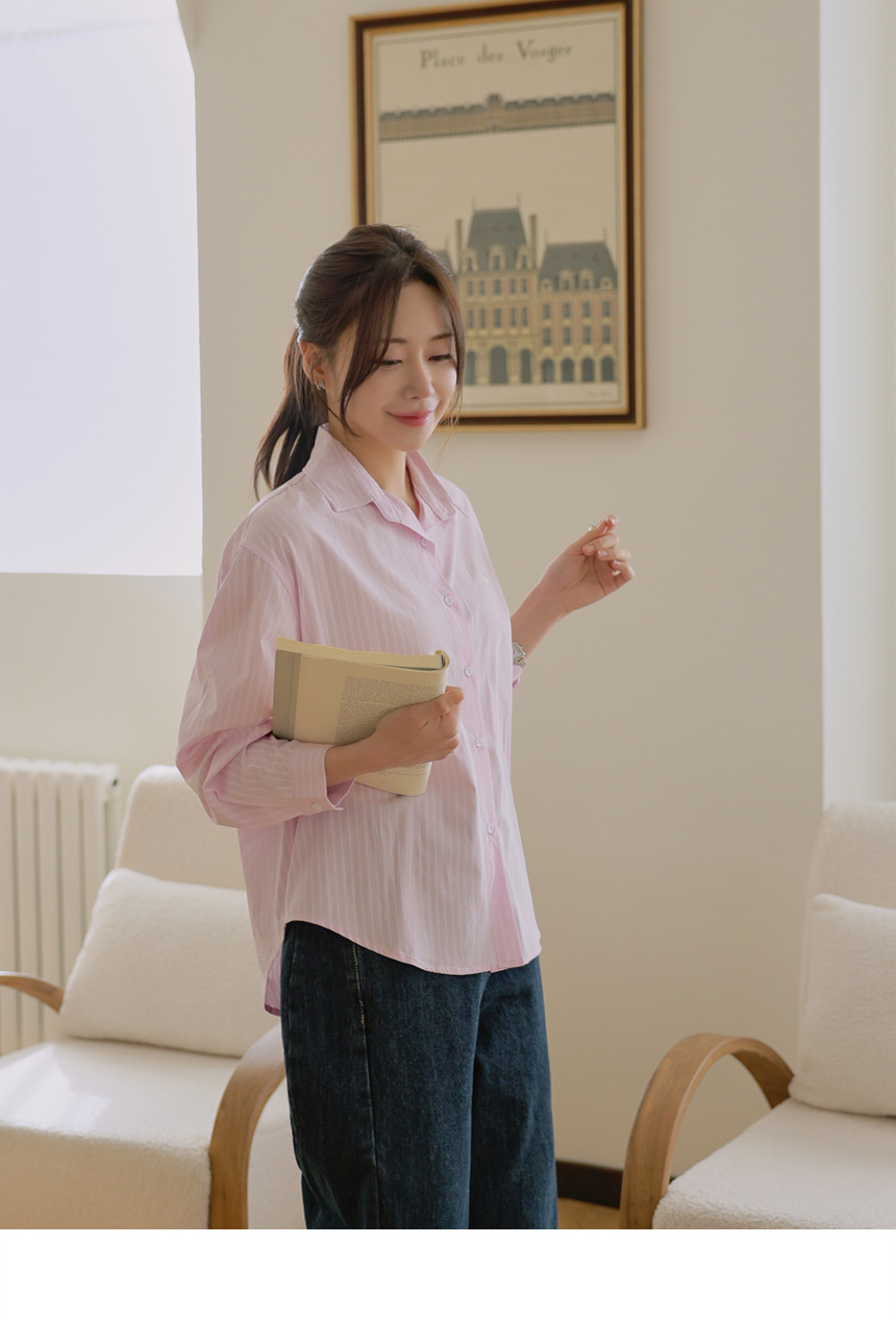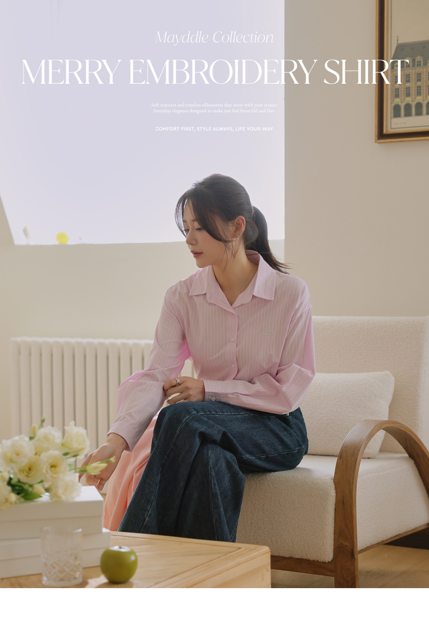 Mary Embroidery Striped Shirt