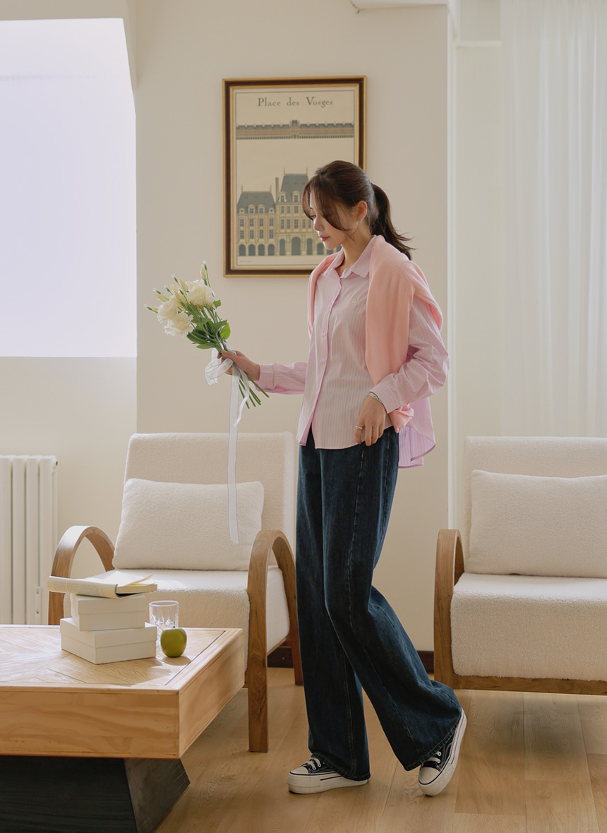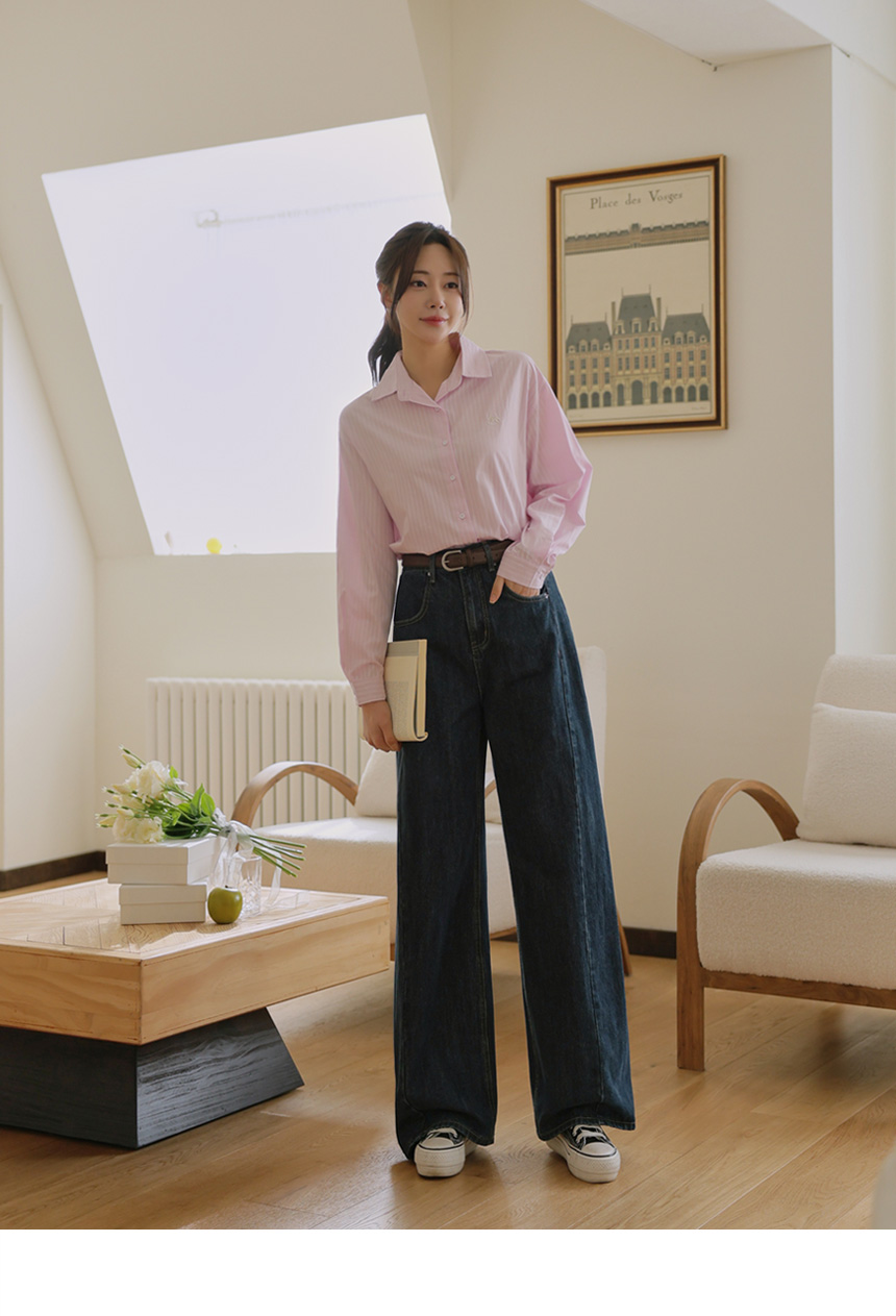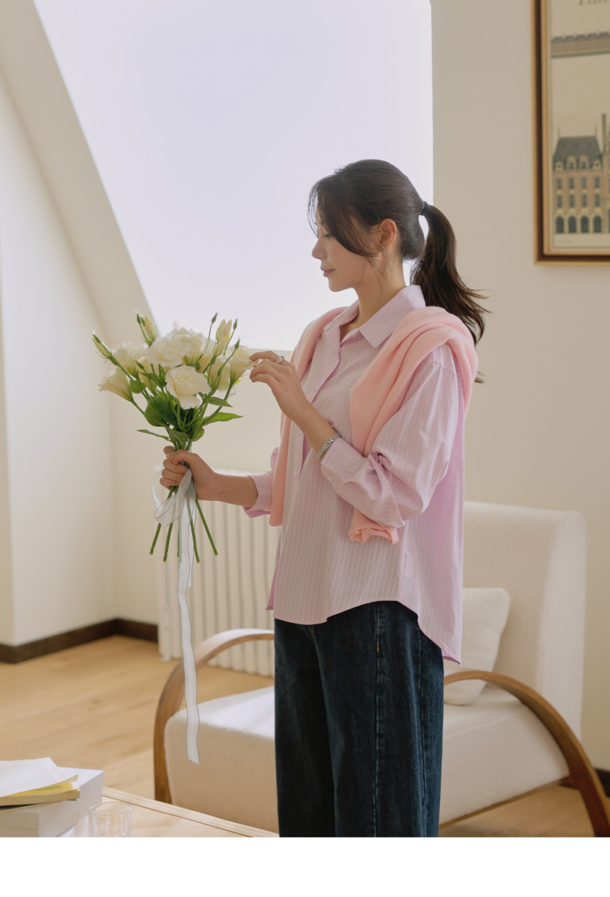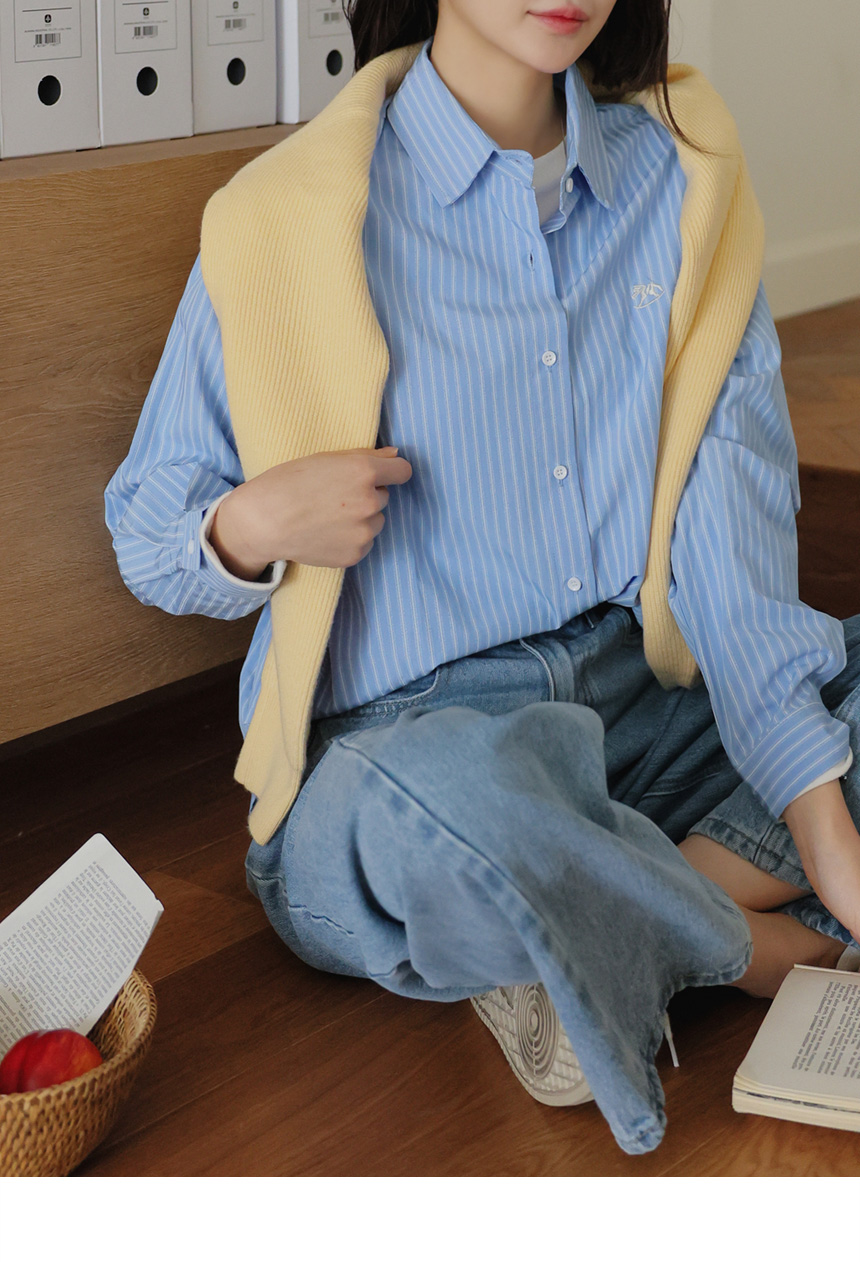 Mary Embroidery Striped Shirt
