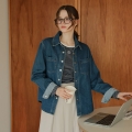 - home > BLOUSE&SHIRTS > Shirt > Soft check color blocking blue jeans