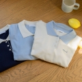 A neat key point knit completed with a color combination collar