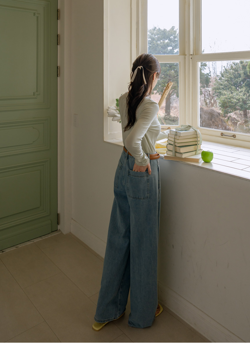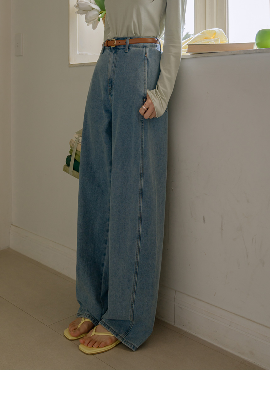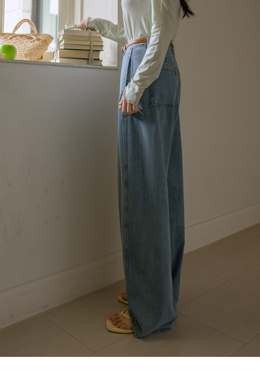 Wide denim pants available in 3 lengths