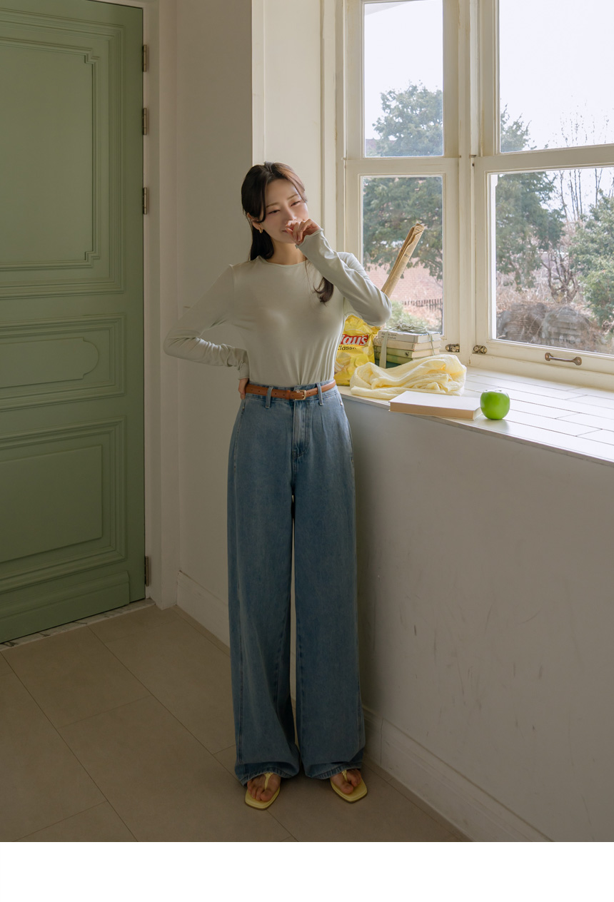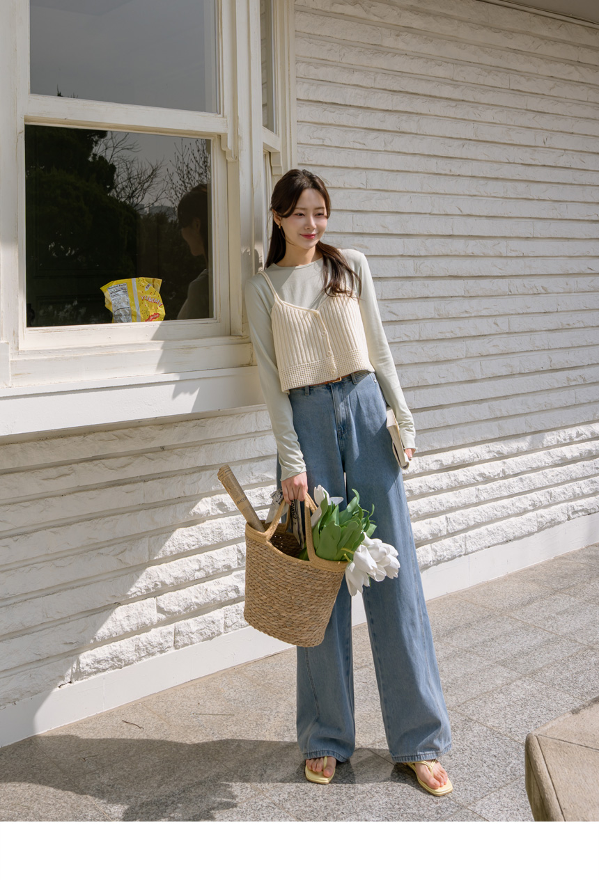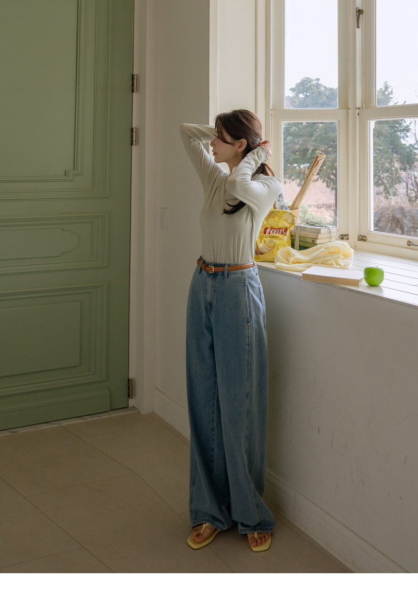 Wide denim pants available in 3 lengths