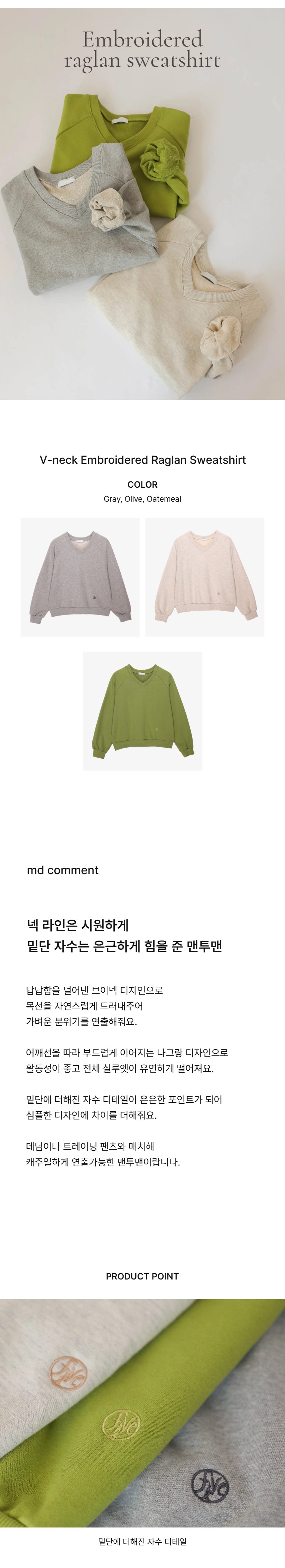V-neck embroidered nagrang man-to-man