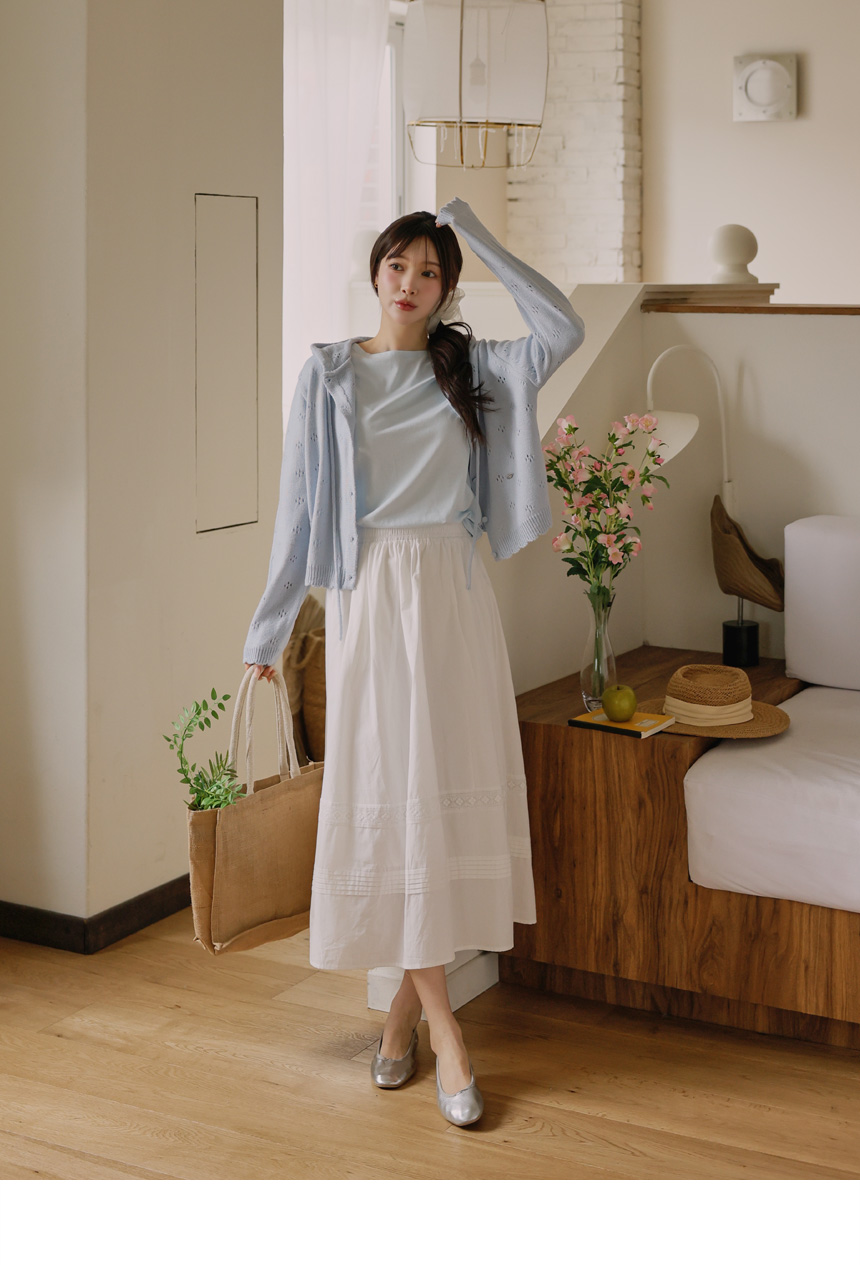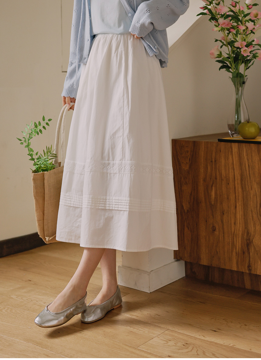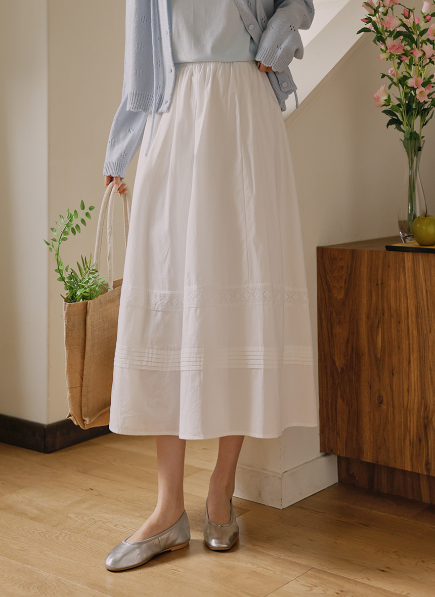 home > Effortlessly chic casual outing look > # Skirt > Lace pintuck tiered skirt