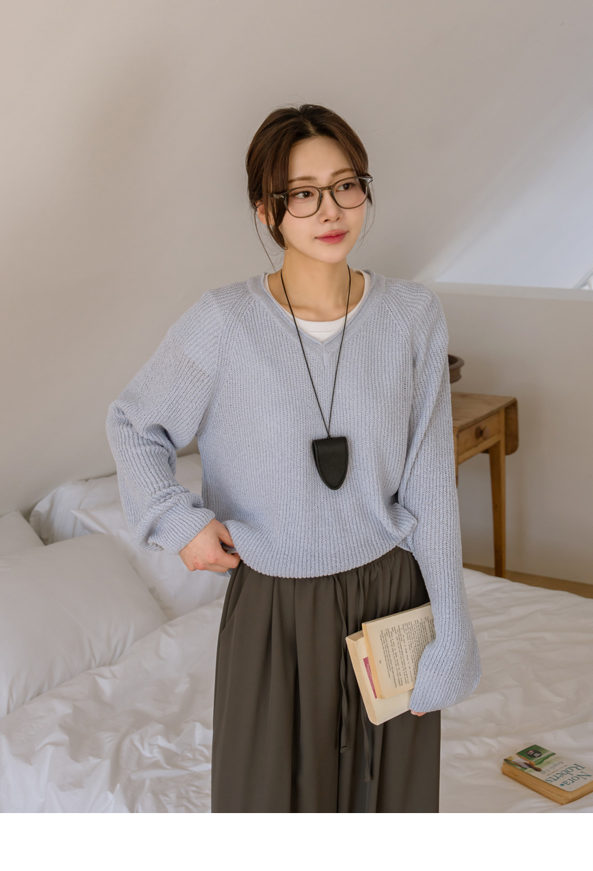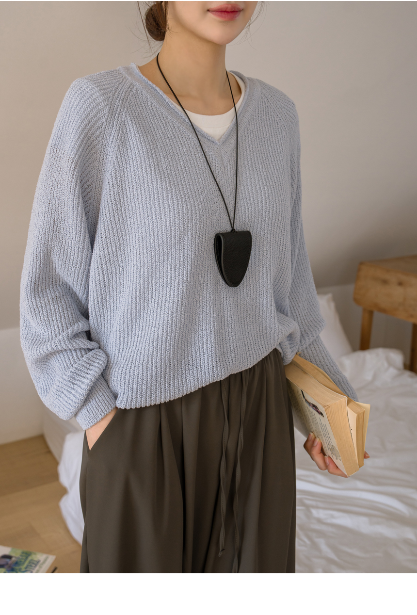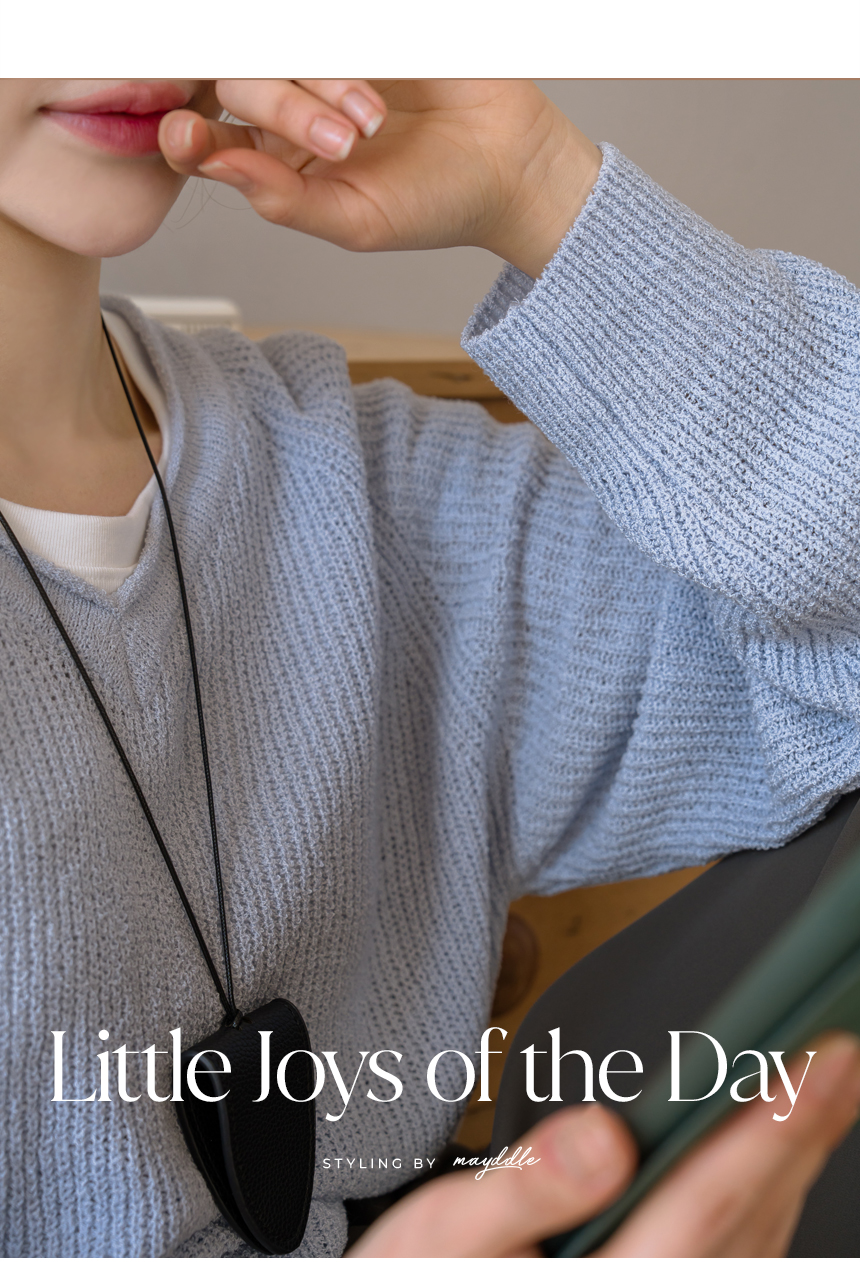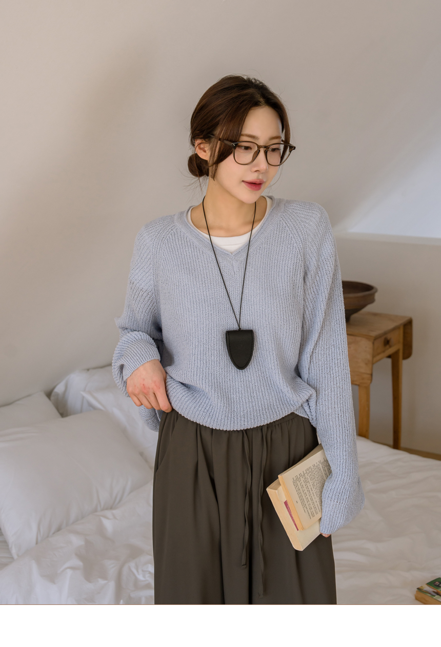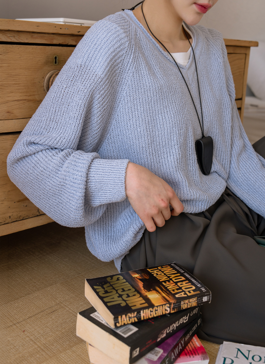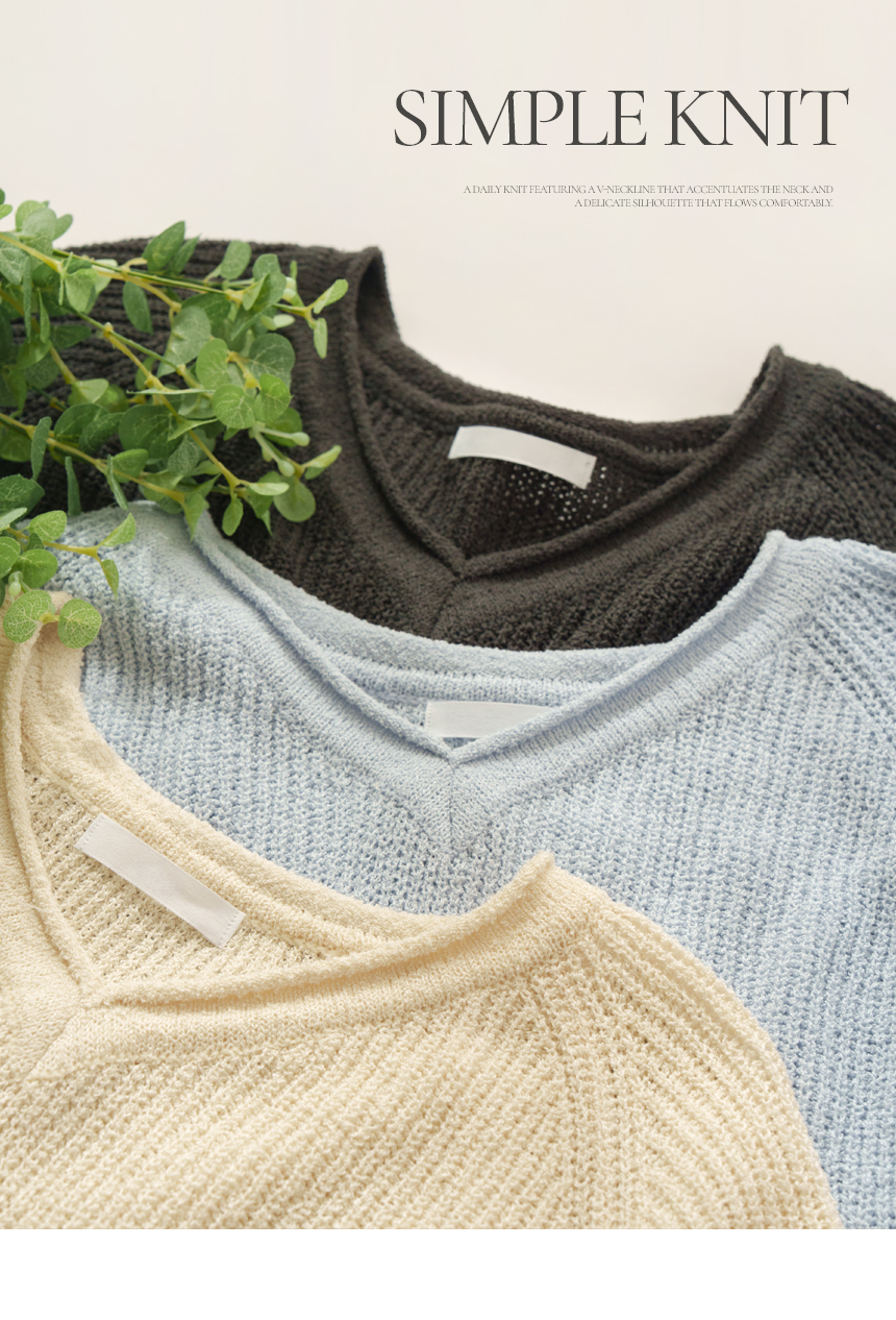 Delicate fit simple V-neck knit