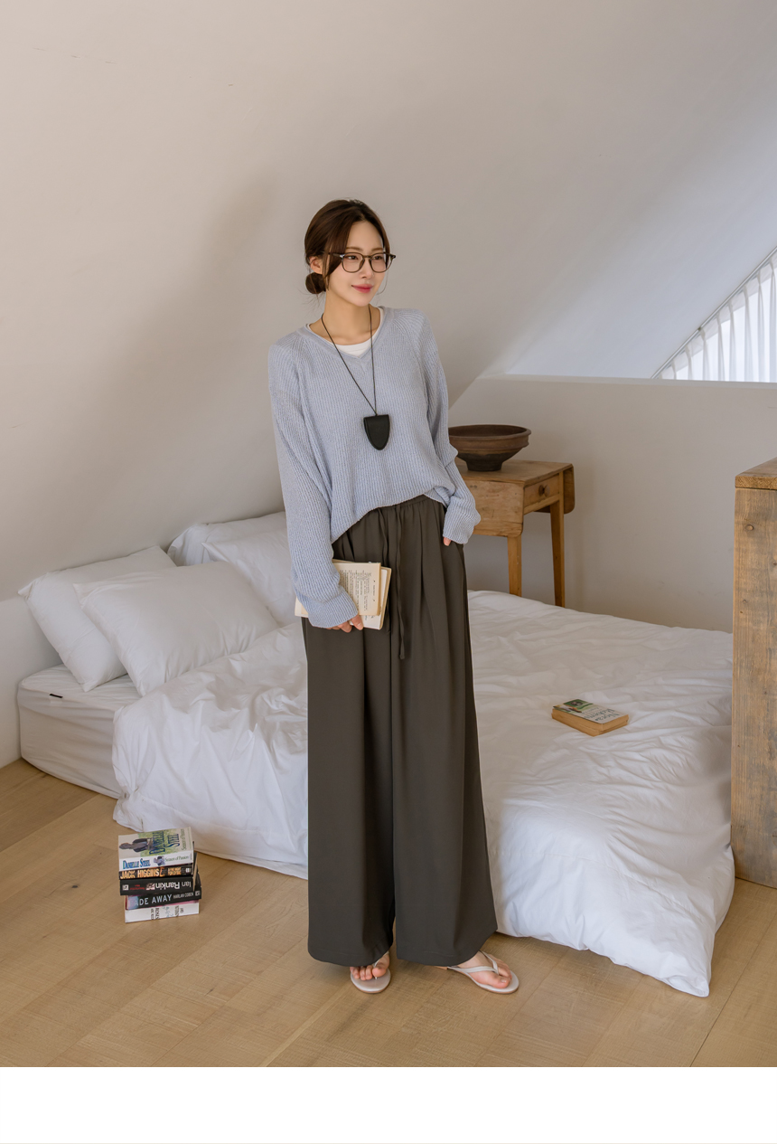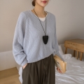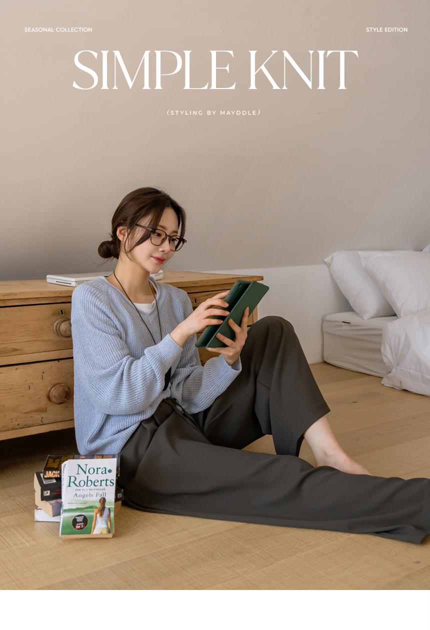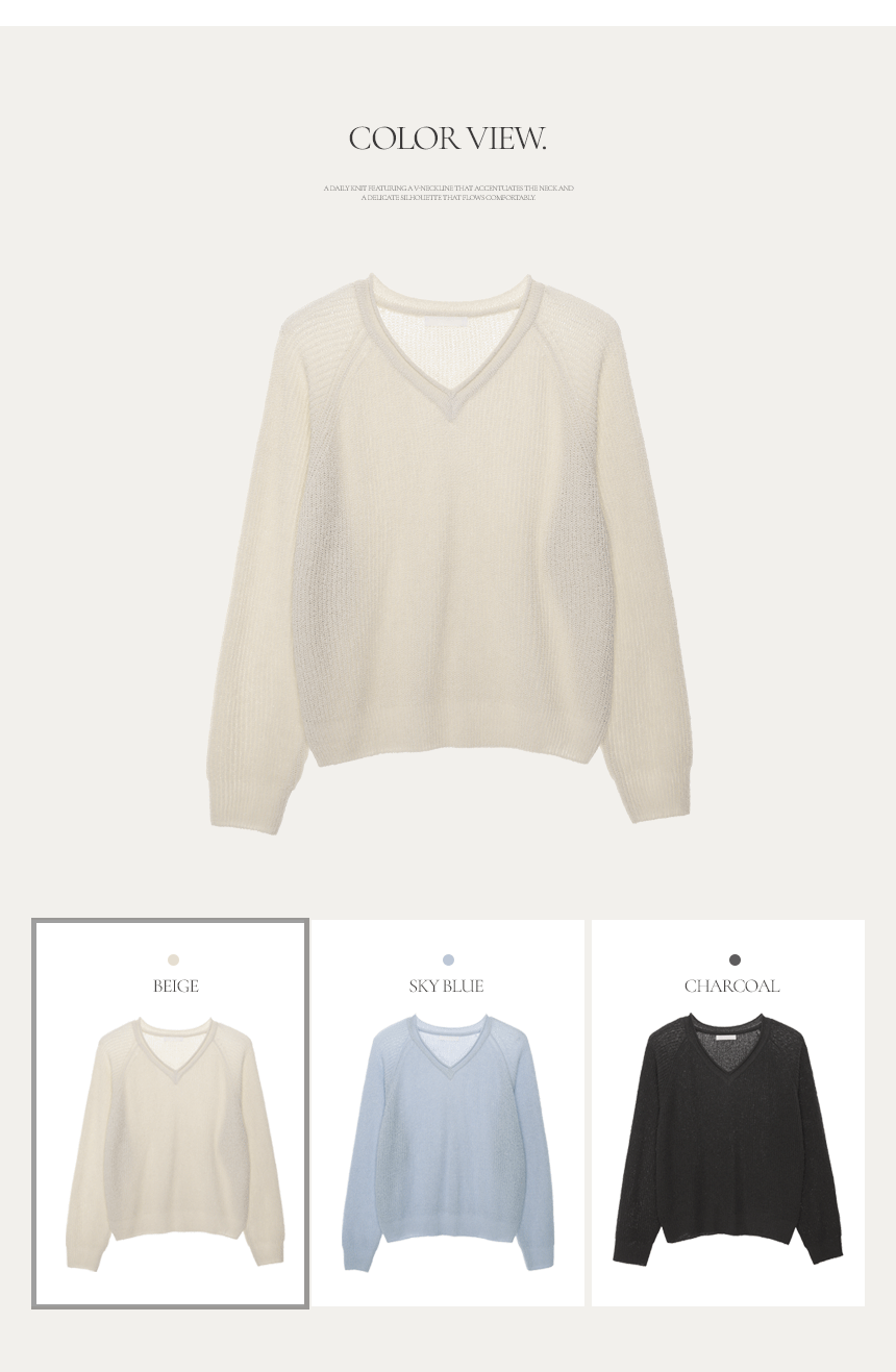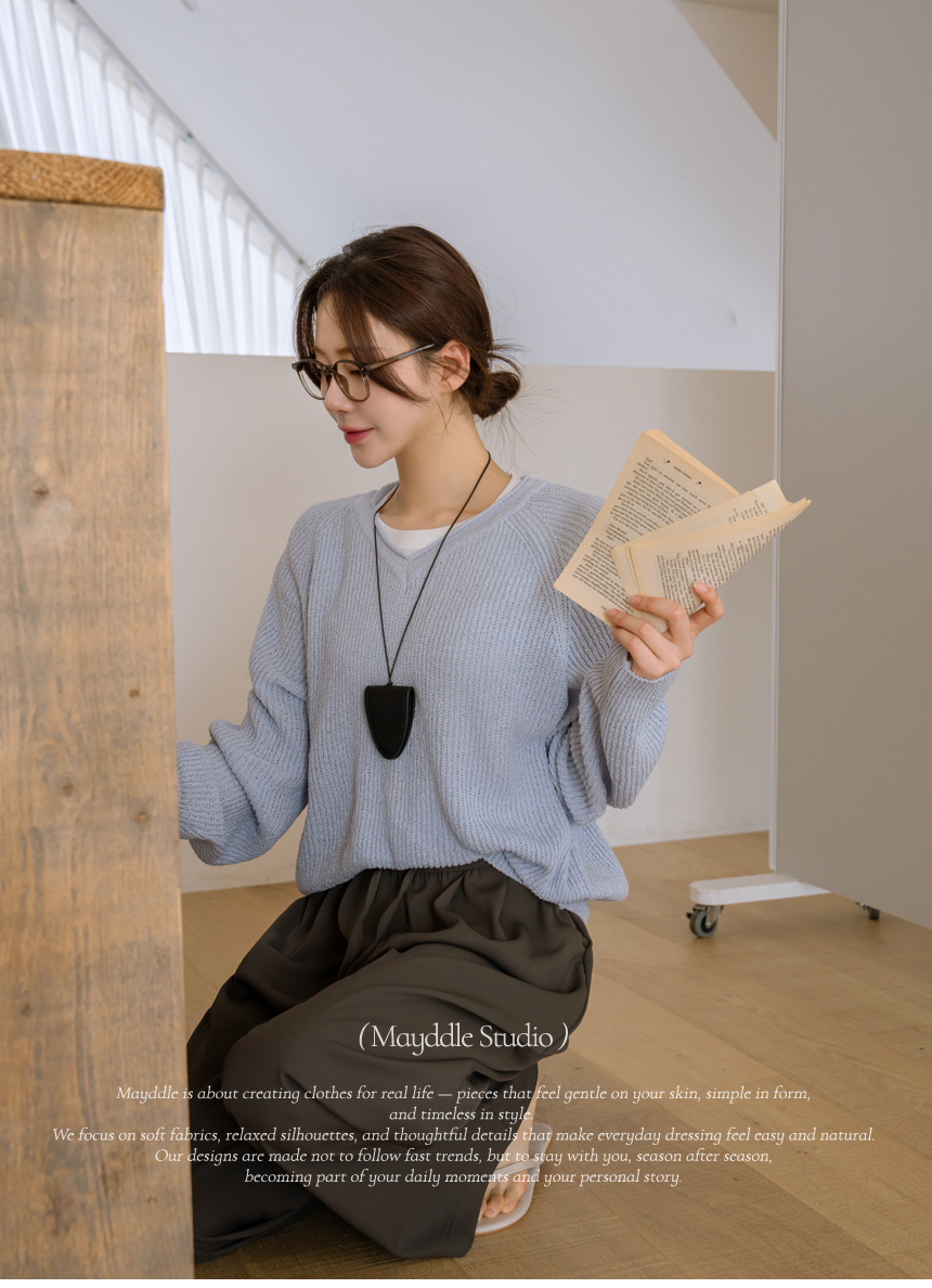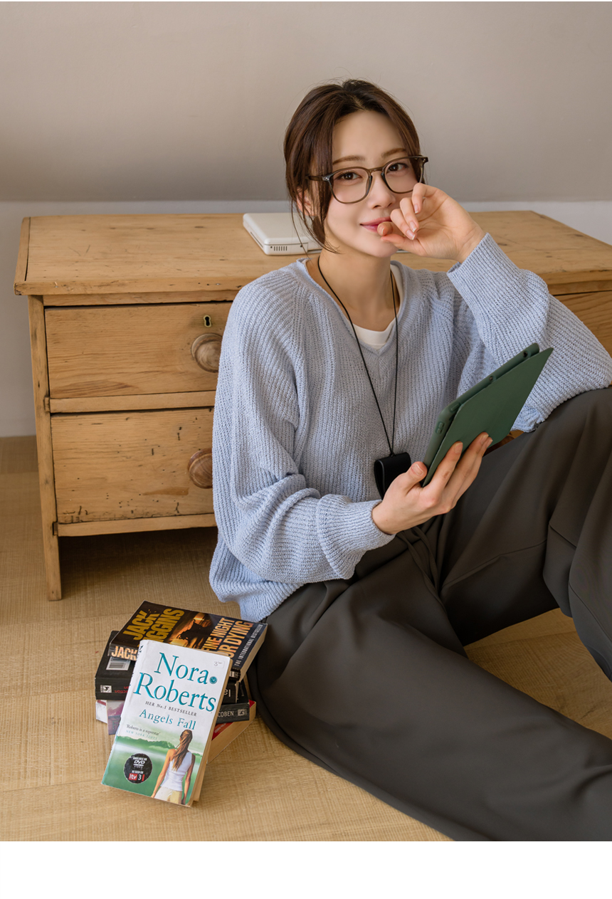 Delicate fit simple V-neck knit