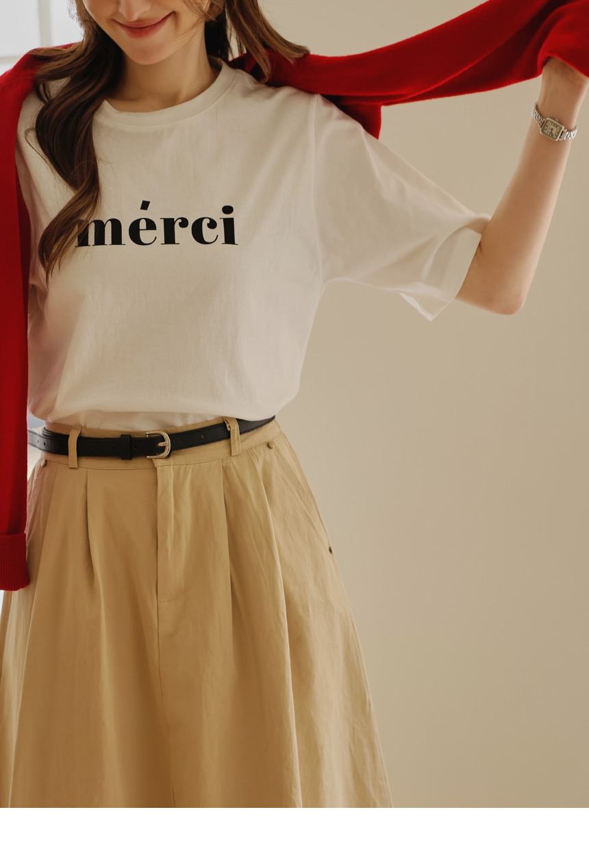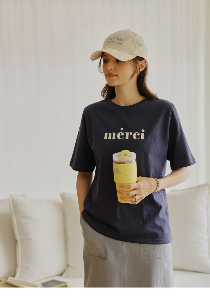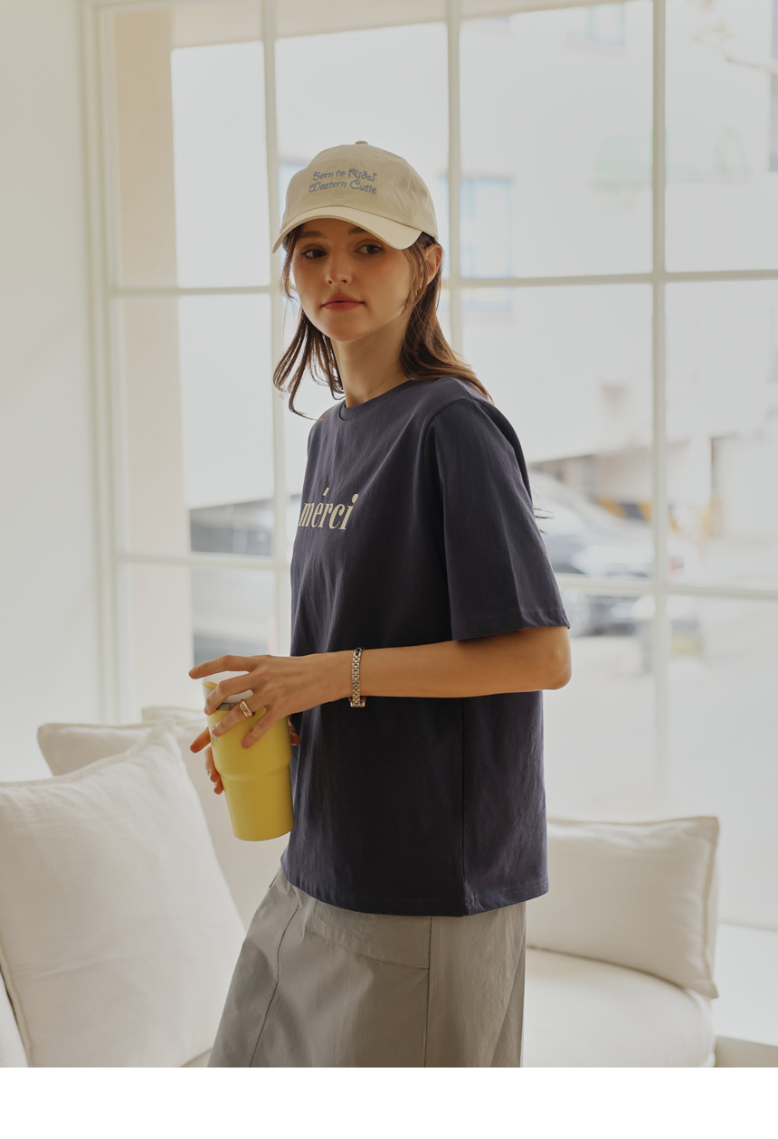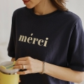 A casual round tee completed with a neat English key point
